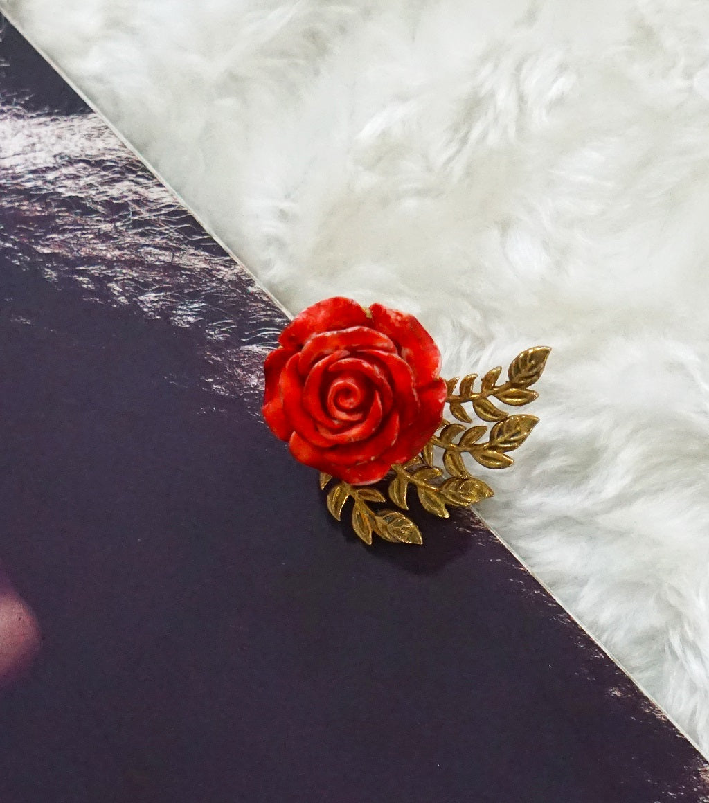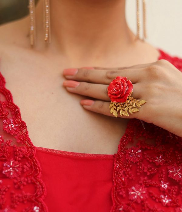 3D Rose flower embellished with leaves motif it’s a statement ring. Red is stylish and elegant at the same time.
