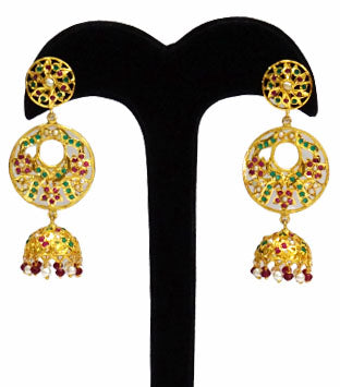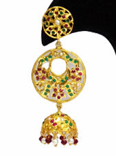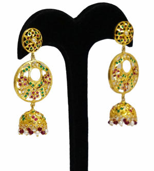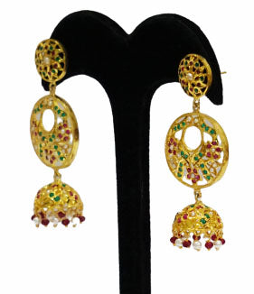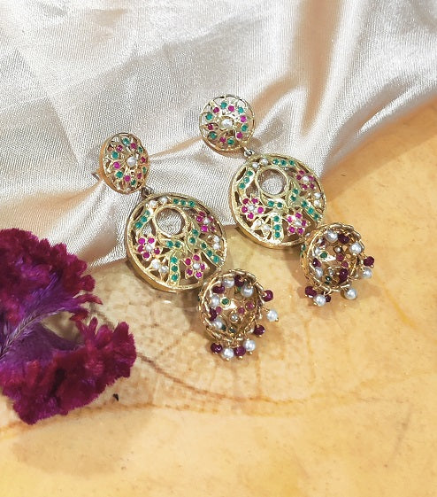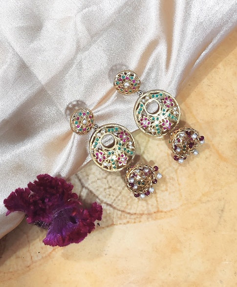 Encrusted with Imitation stones the earring is handcrafted in Silver. The beautiful sawing work brings out the ethnic feel.