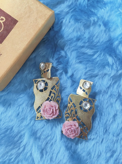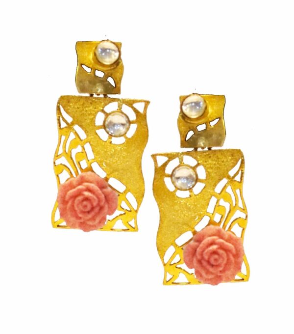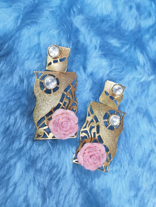 Marked with unique sawing and sandblasting this earring is set in Silver with zircon. It makes a great blend for the modern-day trousseau.