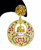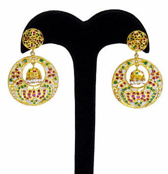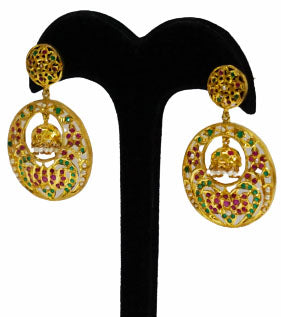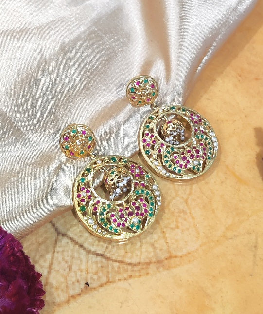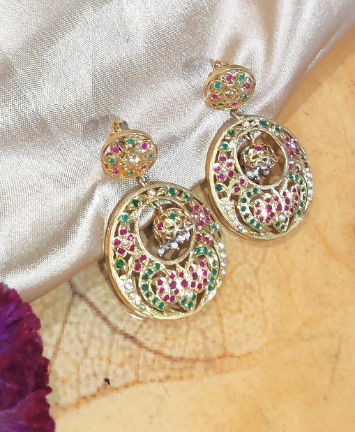 Encrusted with Imitation stones the earring is handcrafted in Silver. The beautiful sawing work brings out the ethnic feel.