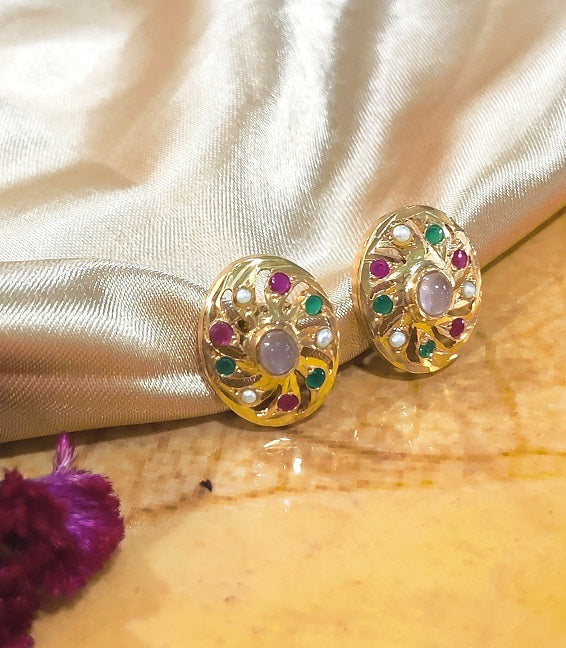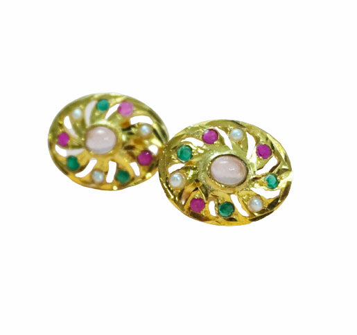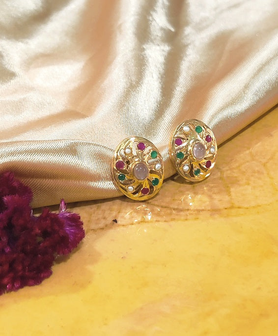 Encrusted with Imitation stones the earring is handcrafted in Silver. The beautiful sawing work brings out the ethnic feel.