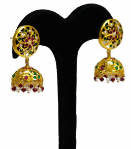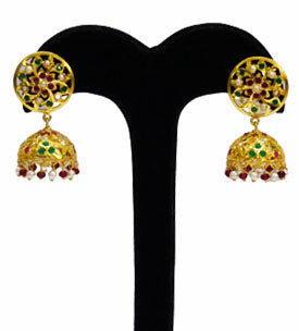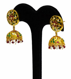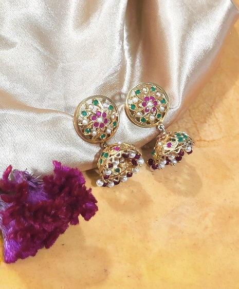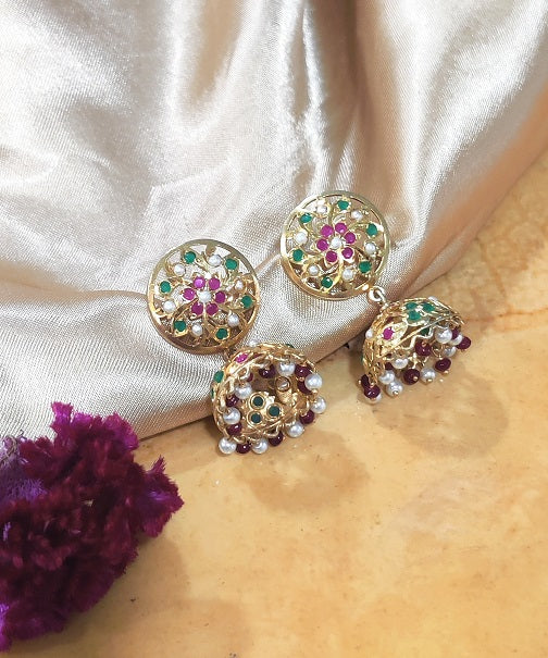 Encrusted with Imitation stones the earring is handcrafted in Silver. The beautiful sawing work brings out the ethnic feel.