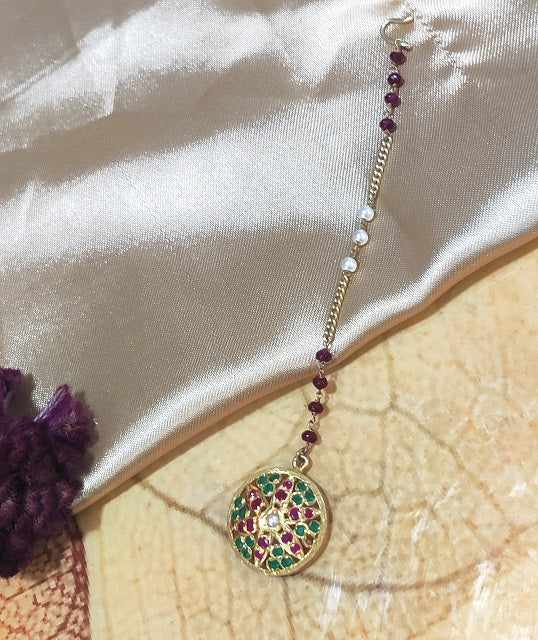 Exquisite old fashioned sawing work which makes you ditch the modern designer piece. Adding this to the traditional look of a maang tikka we have added just the right glamour.