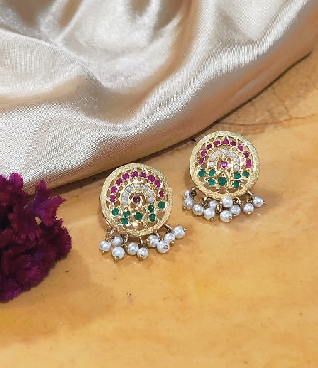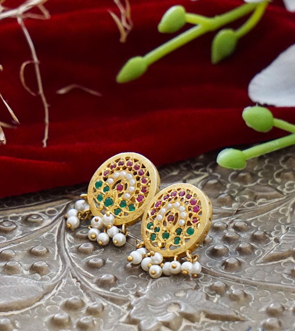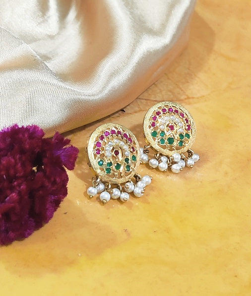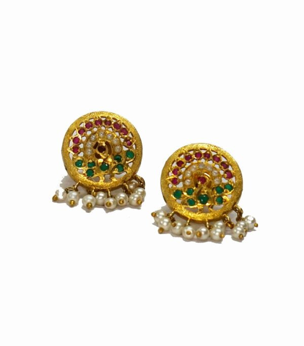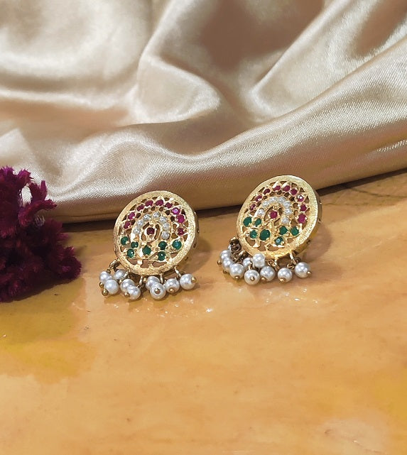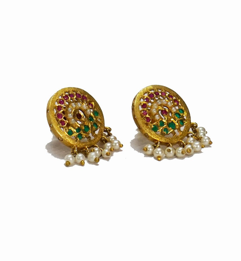 Encrusted with Imitation stones the stud is handcrafted in Silver. The beautiful sawing work brings out the ethnic feel.