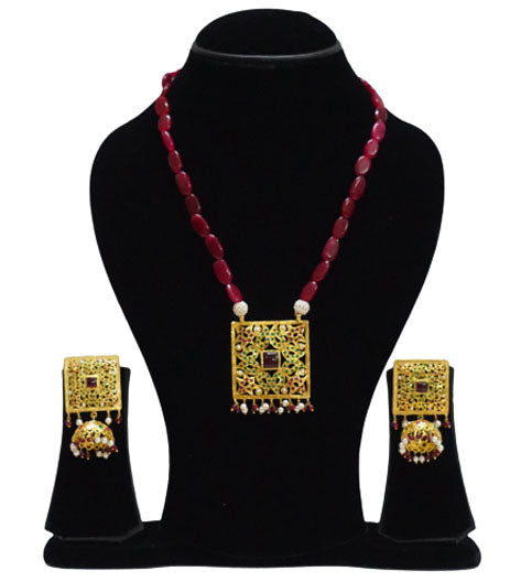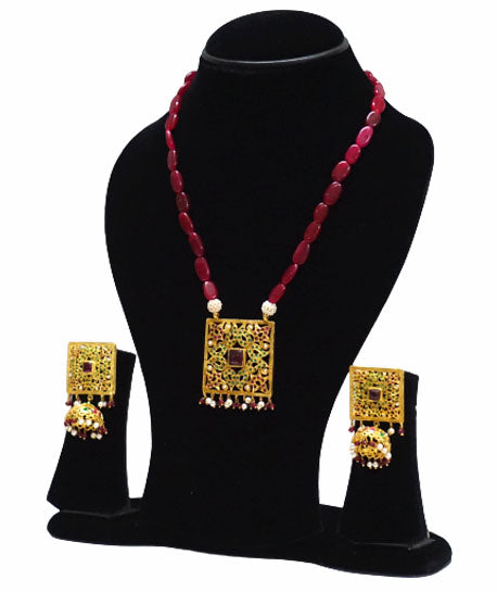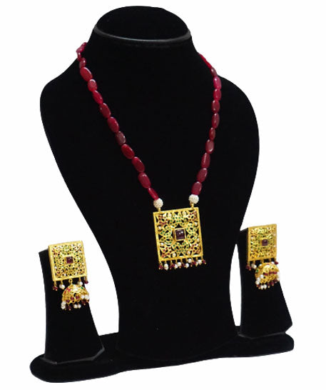 Exclusively handcrafted in Silver is set with Imitation stone. Embodied with traditional sawing craft it is ethnic and royal.