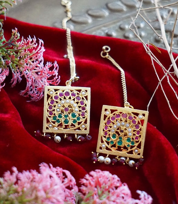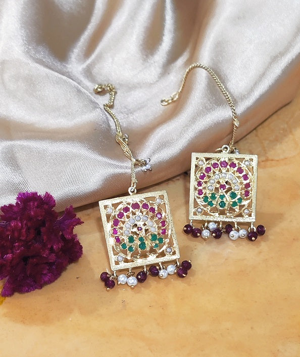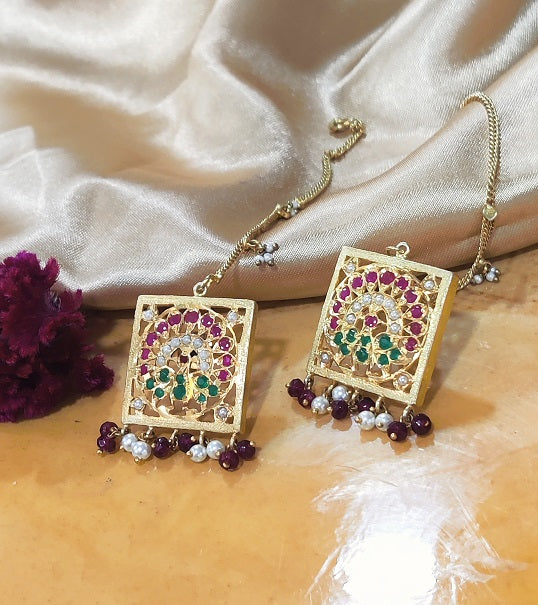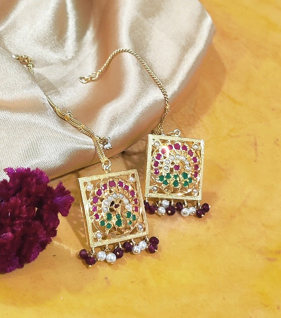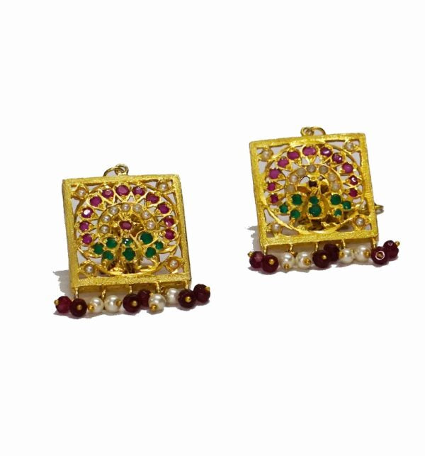 Encrusted with Imitation stones the stud is handcrafted in Silver. The beautiful sawing work brings out the ethnic feel.