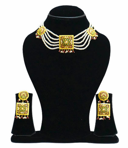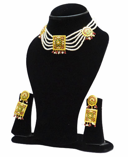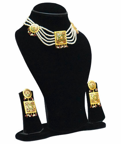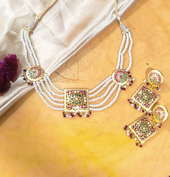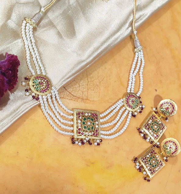 Exquisite old fashioned sawing work which makes you ditch the modern designer piece. The geometry adds a charm to the alluring mix of stones & colors.