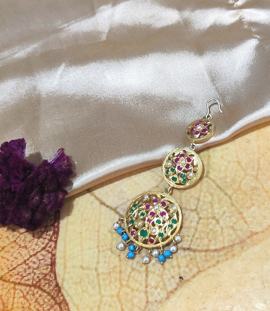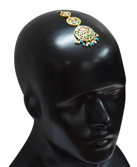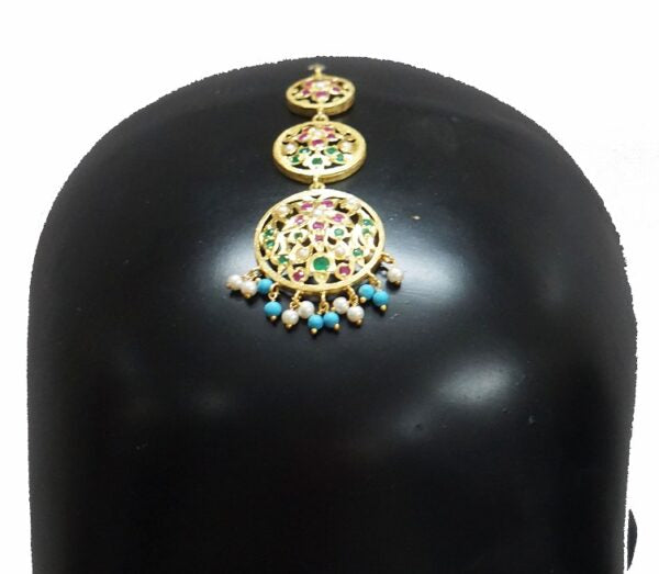 Exquisite old fashioned sawing work which makes you ditch the modern designer piece. Adding this to the traditional look of a maang tikka we have added just the right glamour.