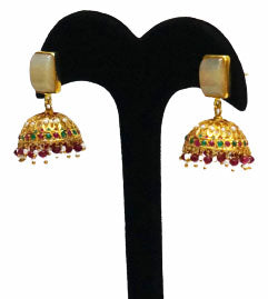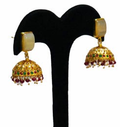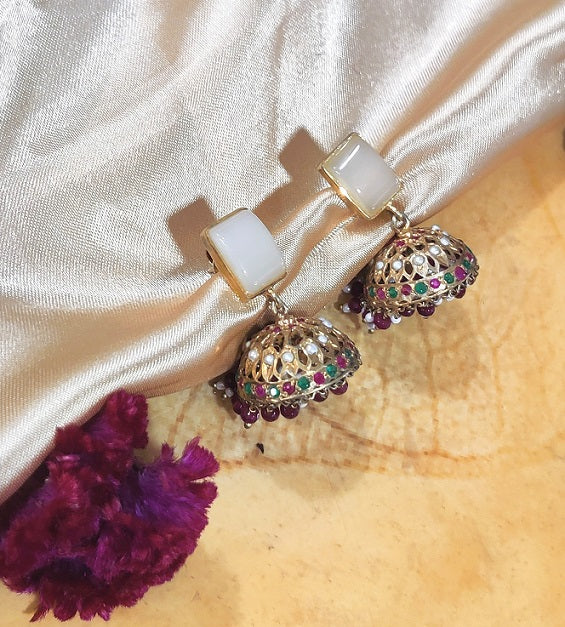 Encrusted with Imitation stones the earring is handcrafted in Silver. The beautiful sawing work brings out the ethnic feel.