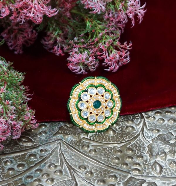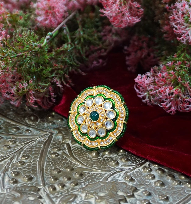 Alankar Green Kundan Ring
