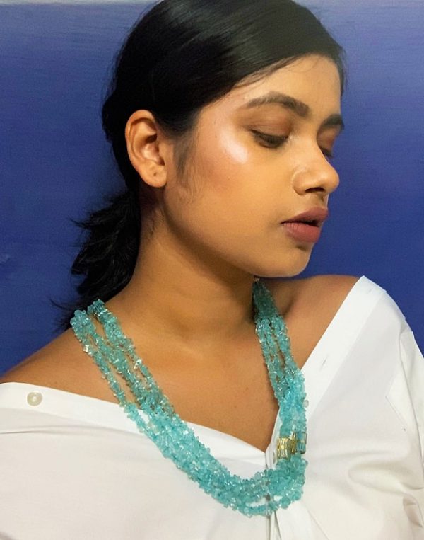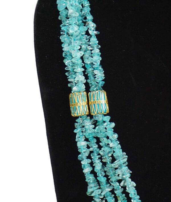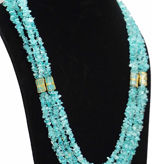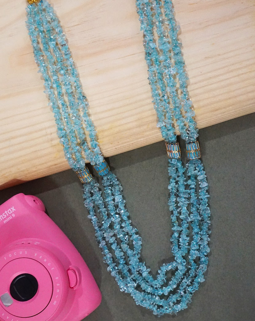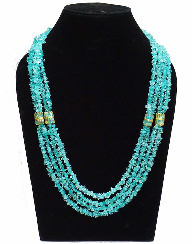 Imitation bead necklace designed with 4 beads work with gold is layered in 4 lines.