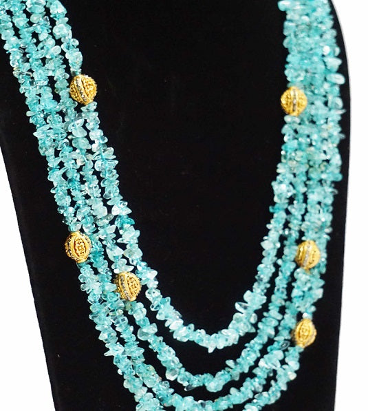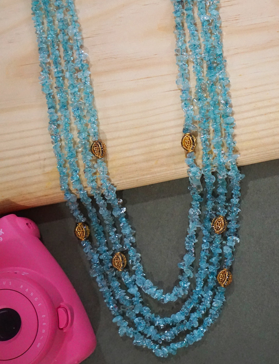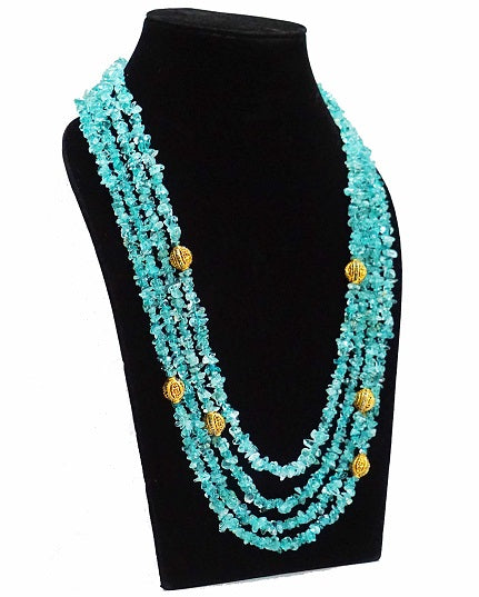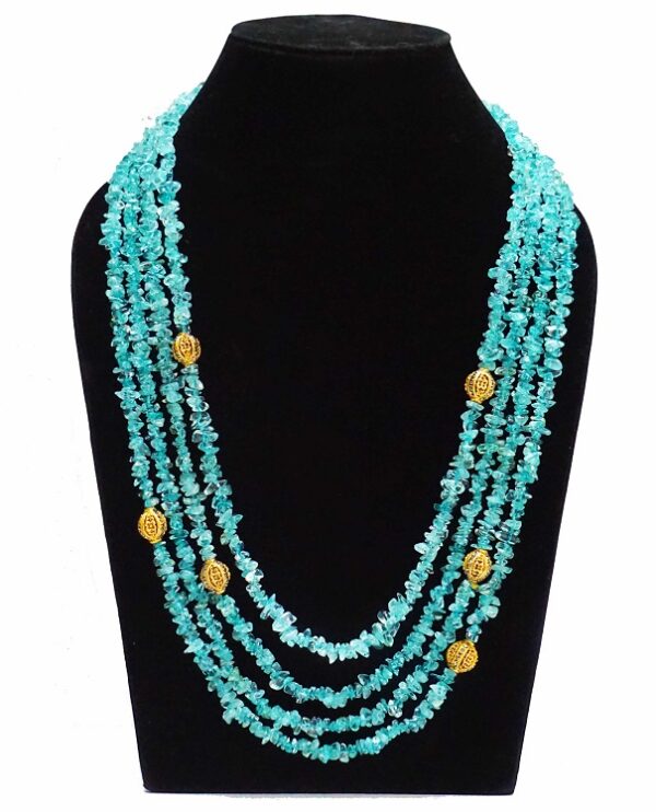Imitation bead necklace designed with 4 beads work with gold is layered in 4 lines.