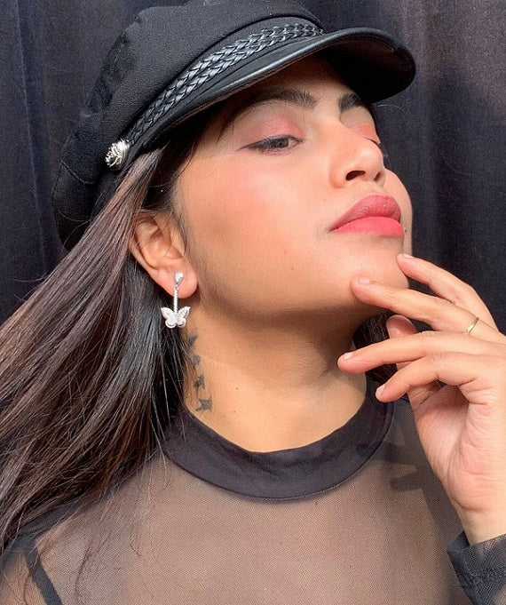 Encrusted with imitation stone this earring is handcrafted in silver. The simple classic daily wear earring.