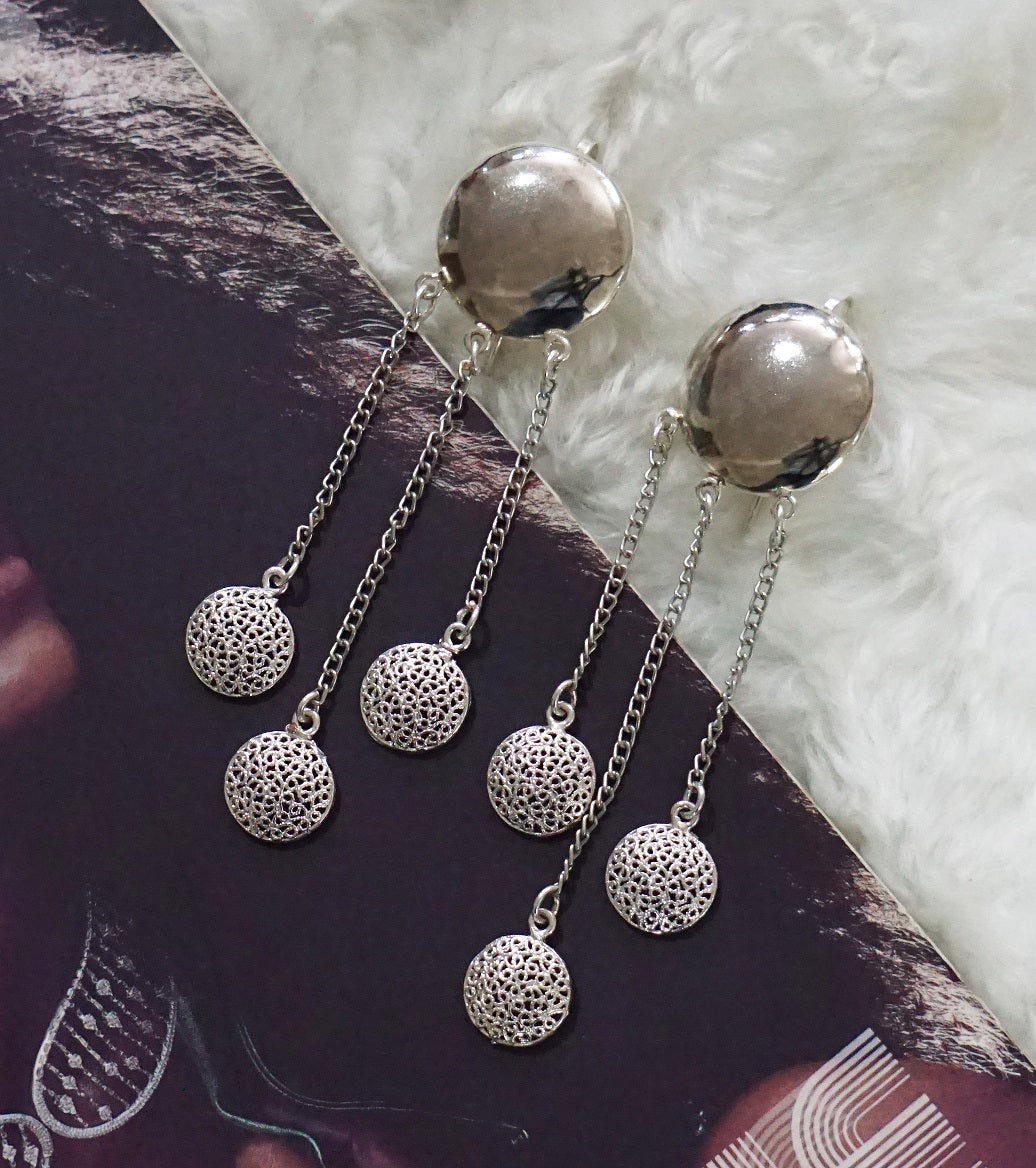 Simple and light, this dangler has a work of chains and round motifs that just completes the beautiful piece.