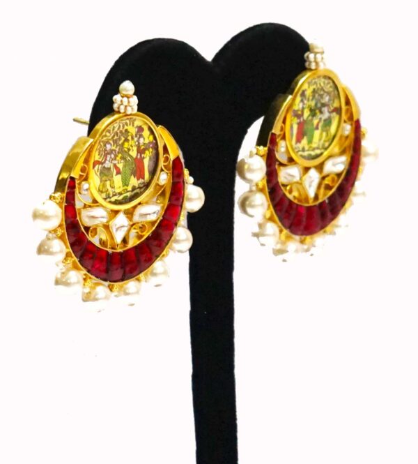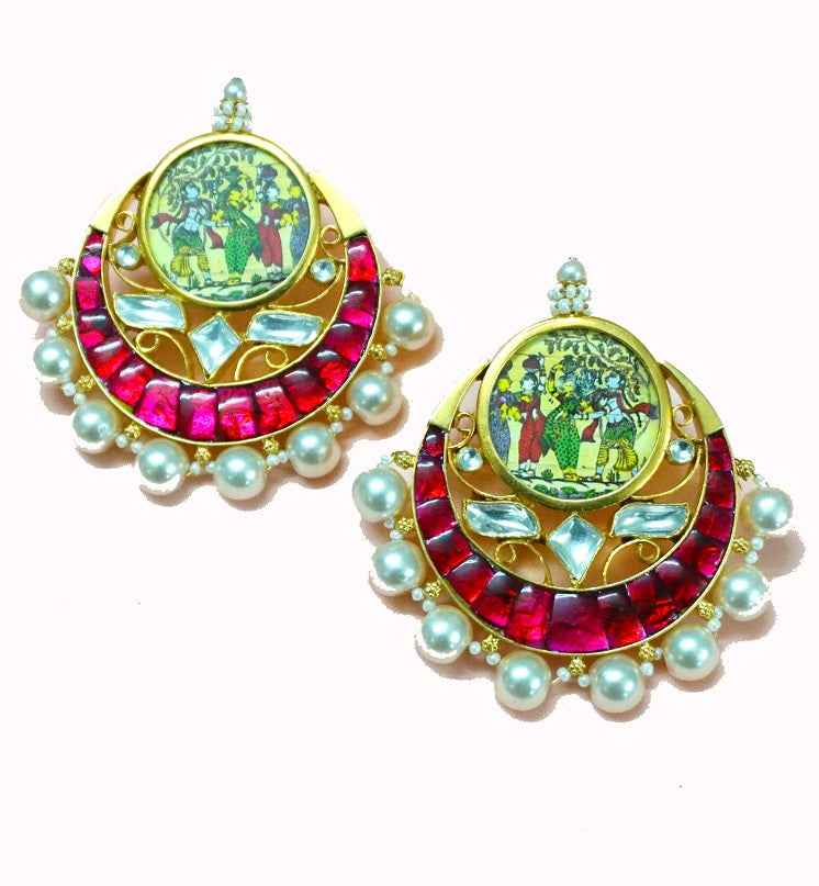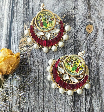 The portrait coming from Ramayana, when Ram, Lakshman, and Sita leave for vanvaas. Profounded and beautified by handcrafted Kundan work.