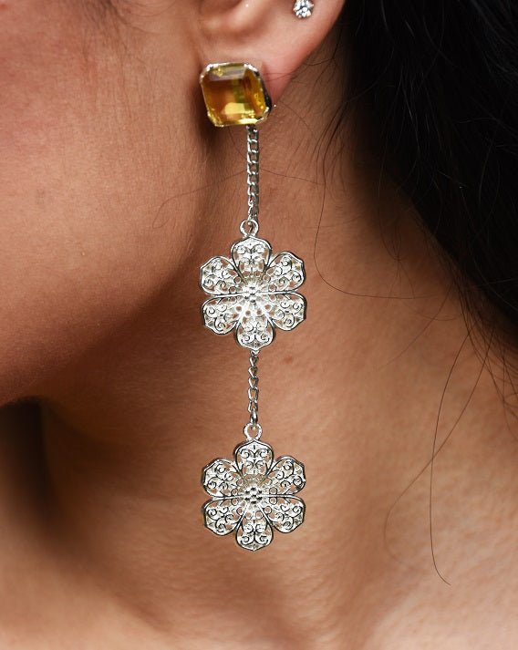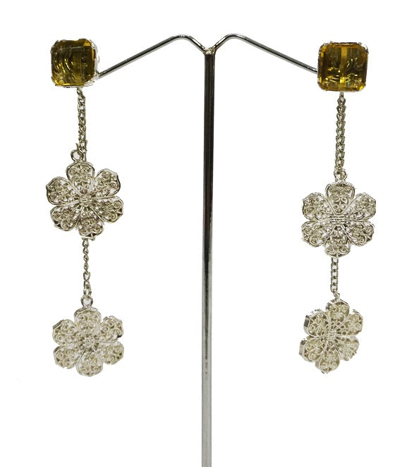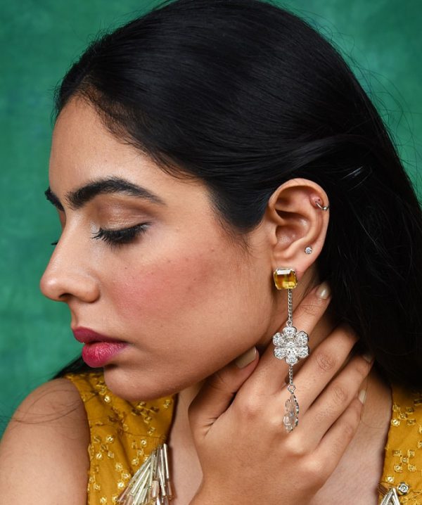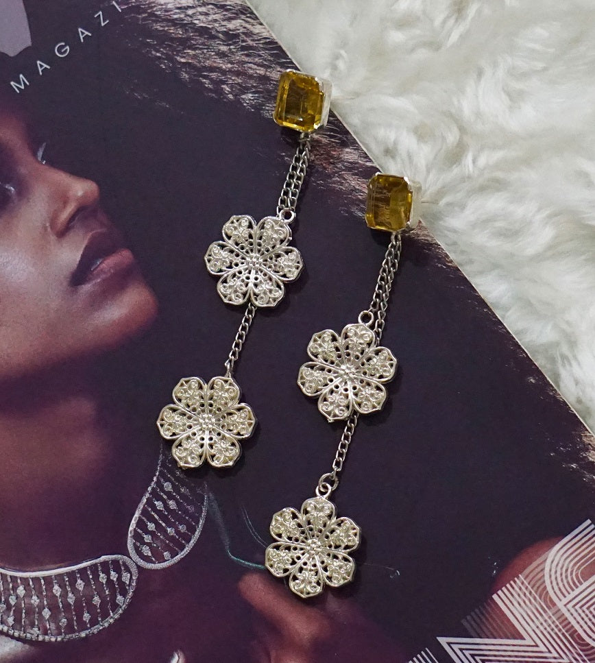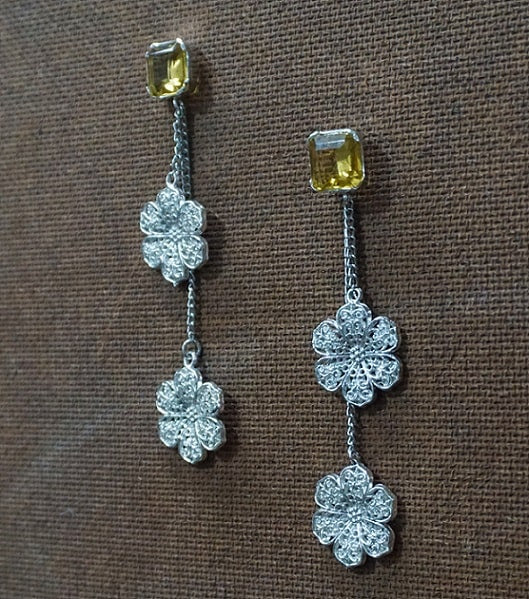 Layered flower motifs embellished on Citrine yellow stone are just perfect for that festive look.
