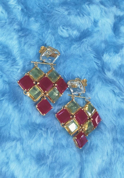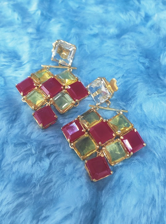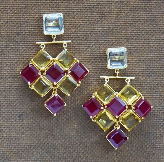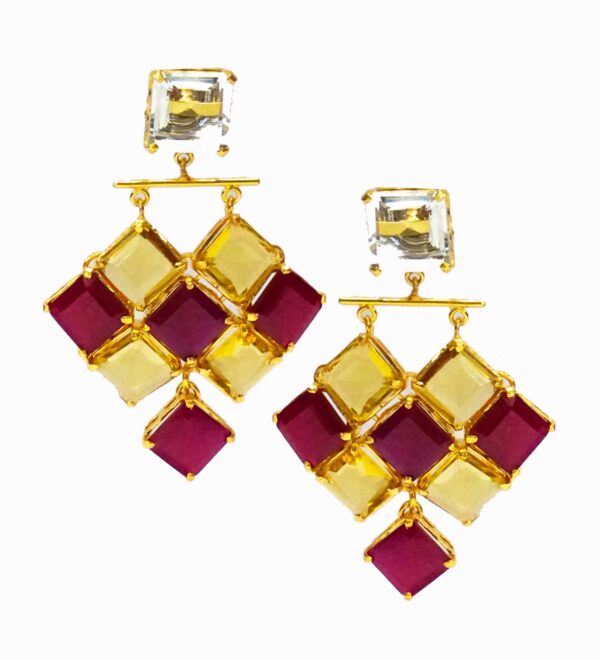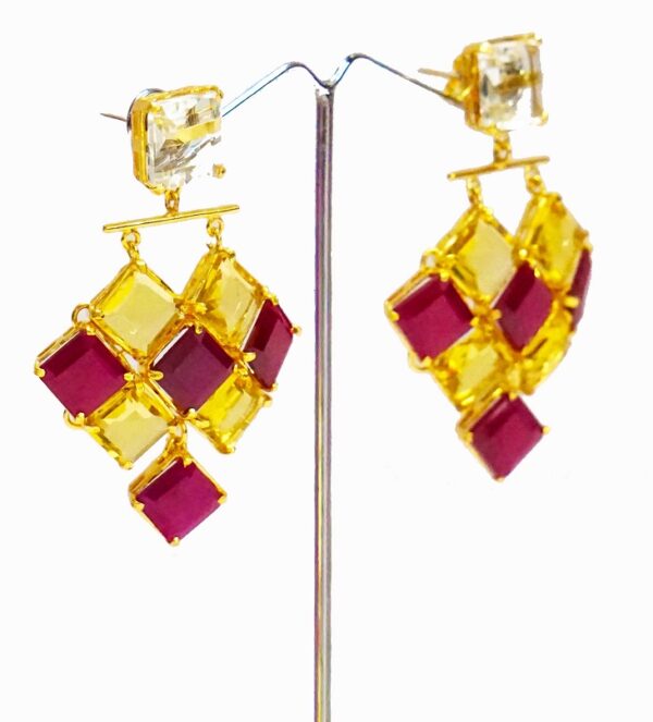 Citrine & Ruby Square stones set in triangle layered form. The dangler is just too beautiful too miss.