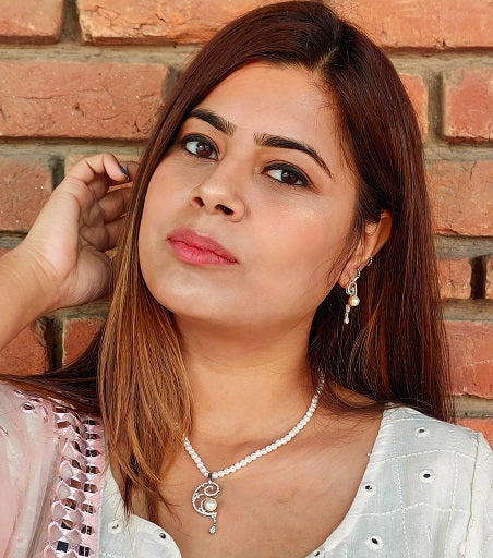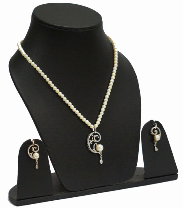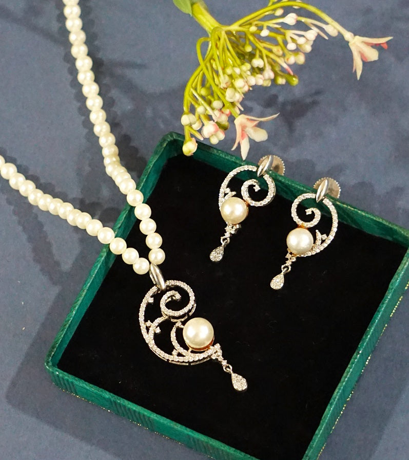 Encrusted with imitation stone this set is handcrafted in silver. The simple motif makes it a regular wear.