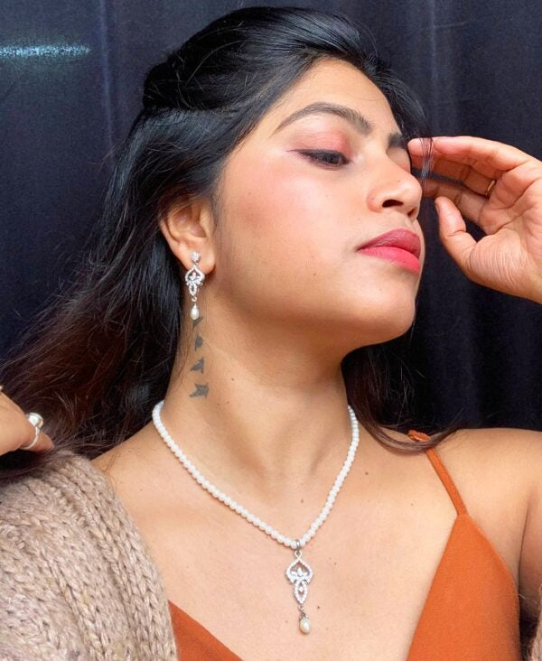 Crafted in silver, light weight necklace set for daily wear stand out.