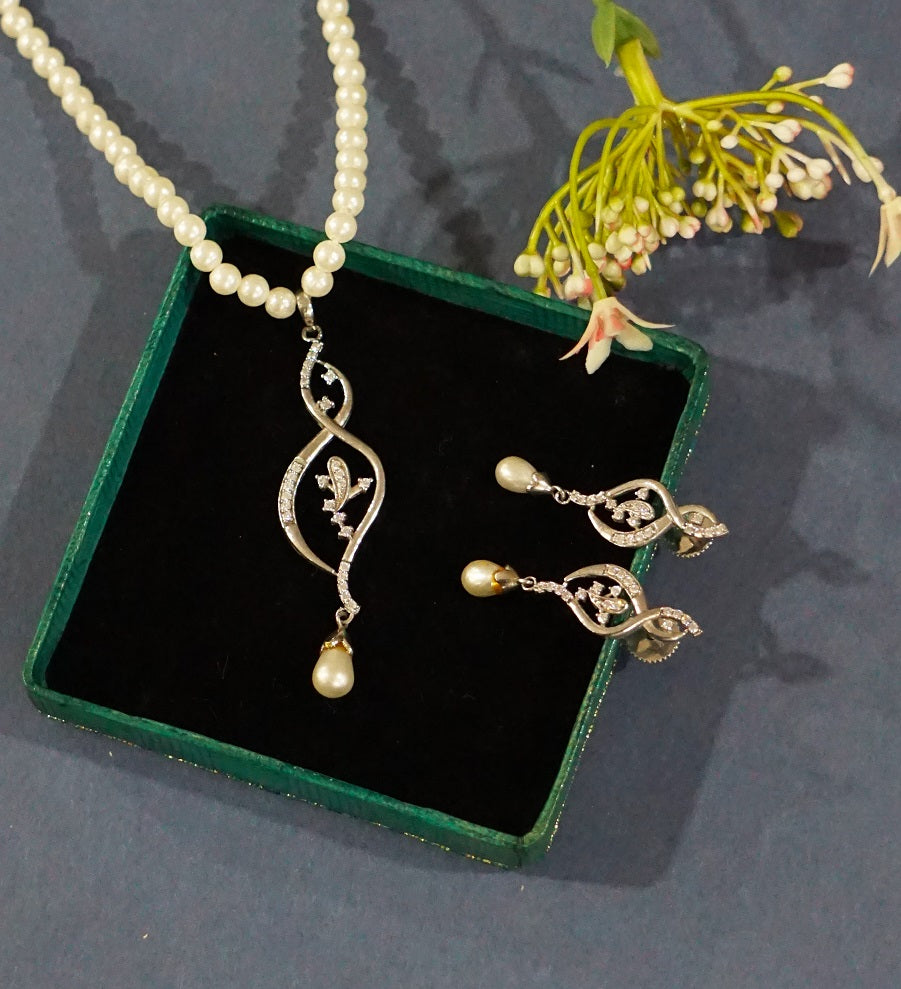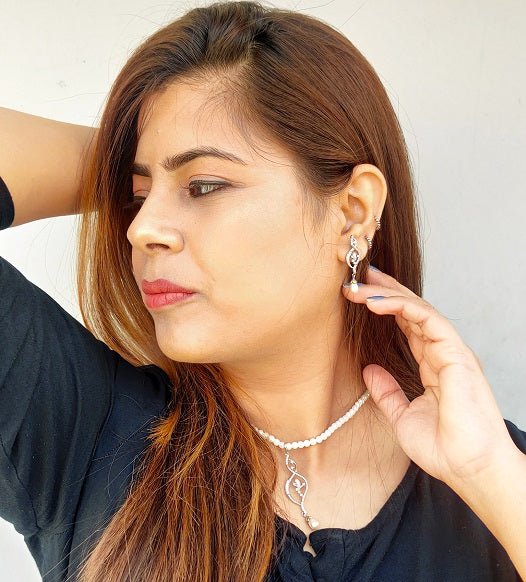 Crafted in silver, light weight necklace set for daily wear stand out.