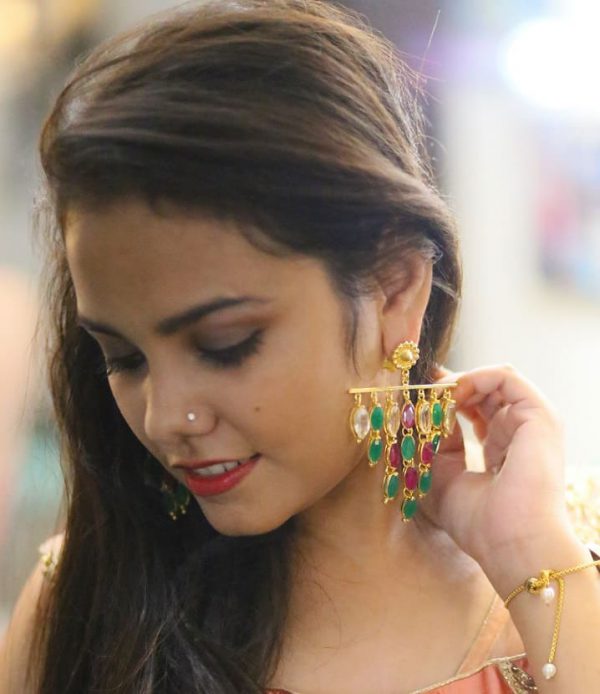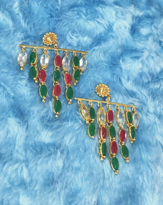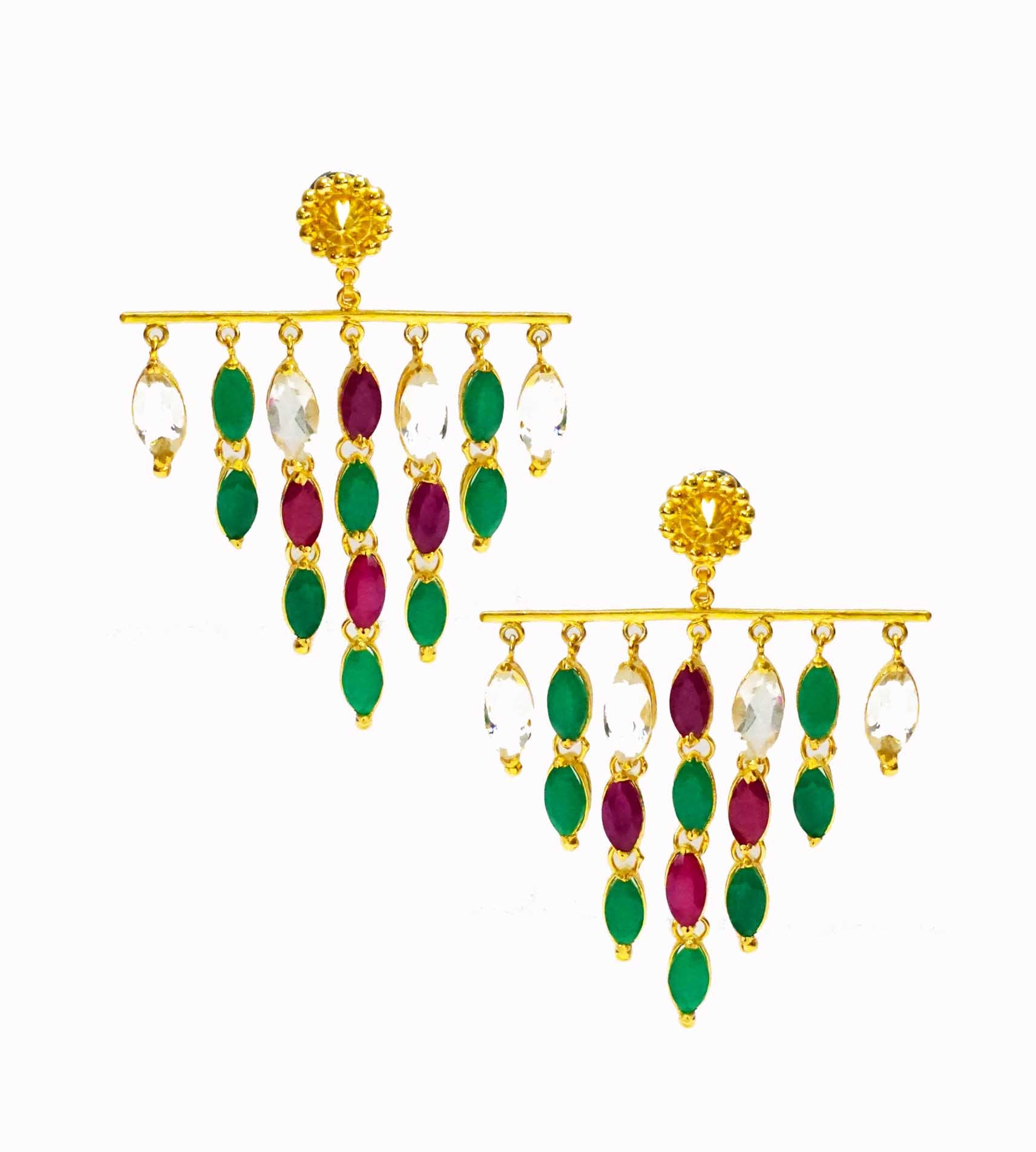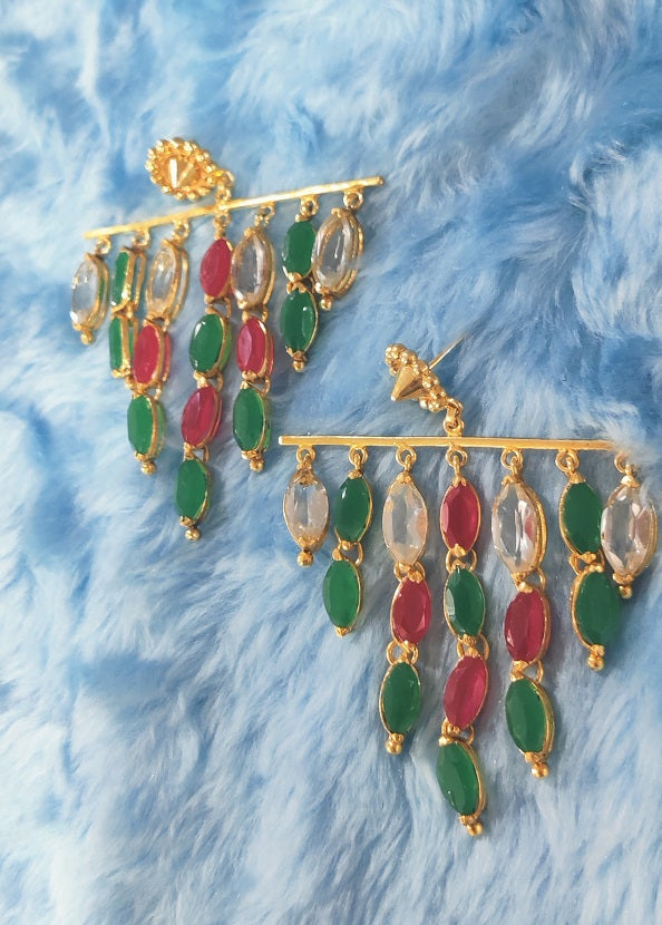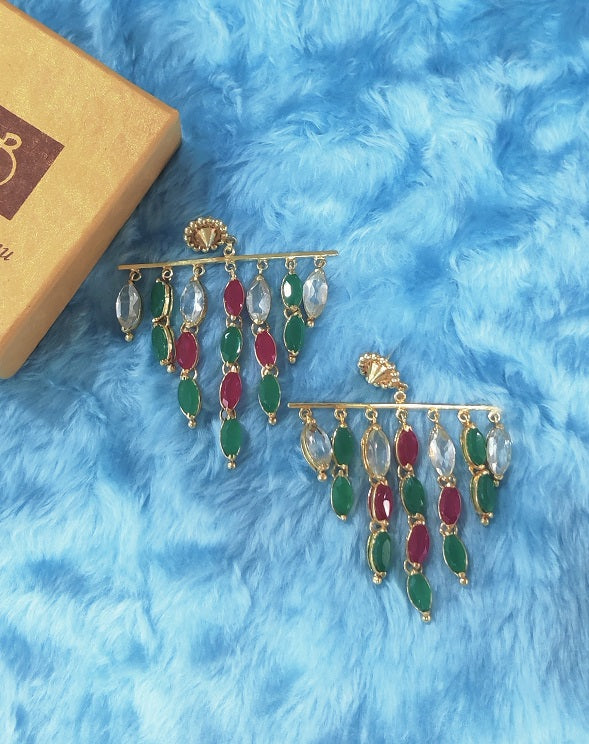 Emerald & Ruby marquise stones set in triangle layered form. The dangler is just too beautiful to miss.