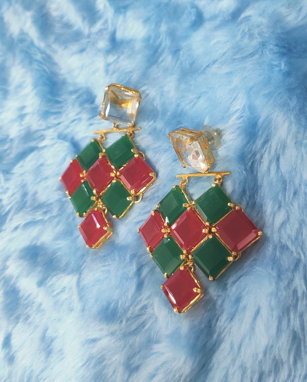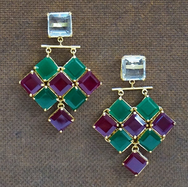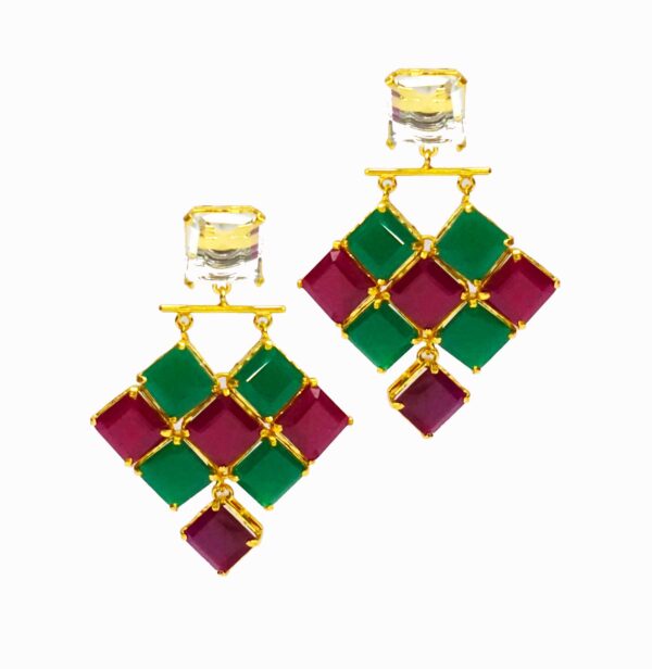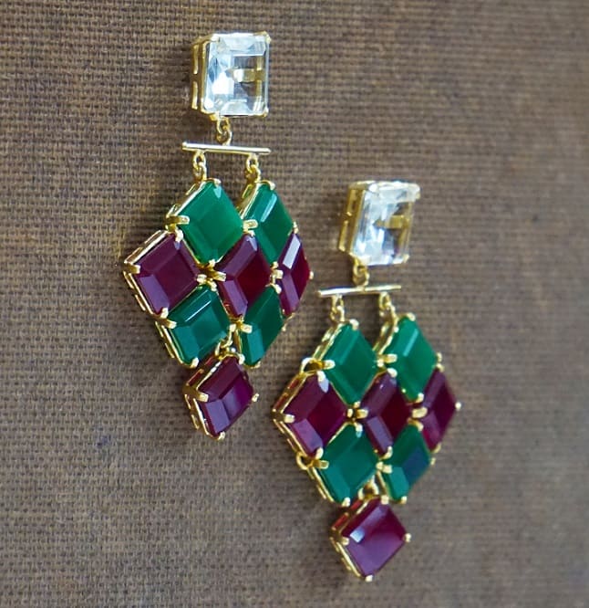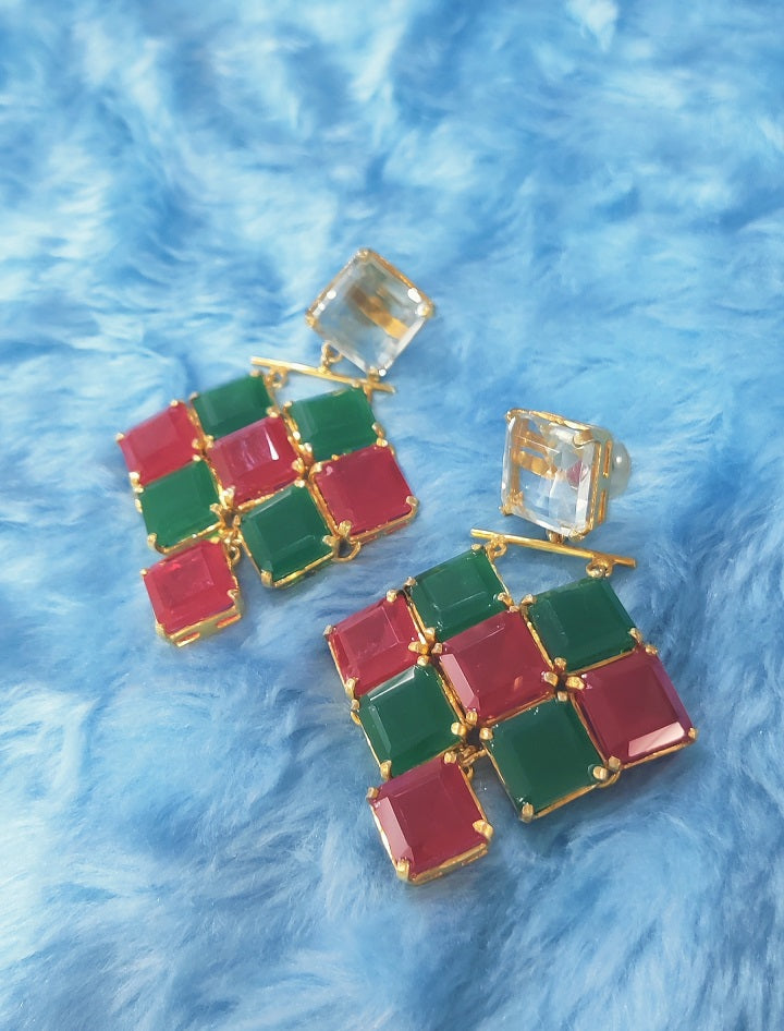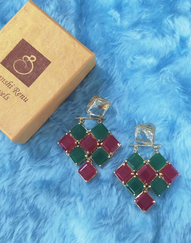 Emerald & Ruby Square stones set in triangle layered form. The dangler is just too beautiful to miss.
