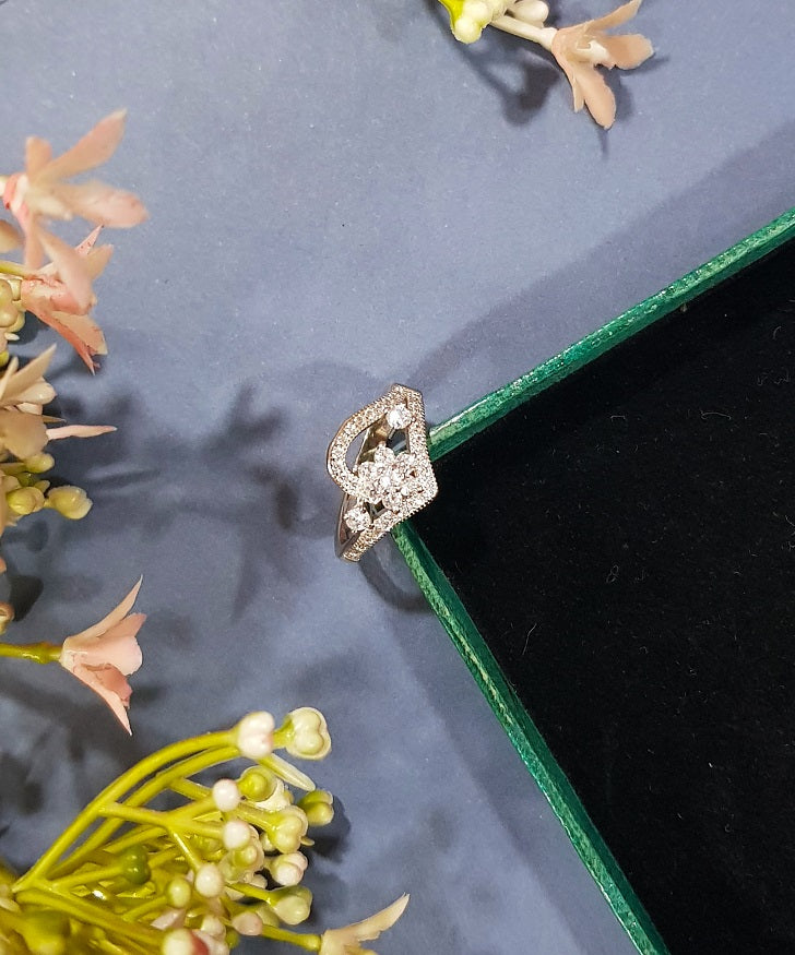 Embellished with imitation stones this Fiona Princess Ring is a complete delight. Crafted in Silver it has a high class appeal.