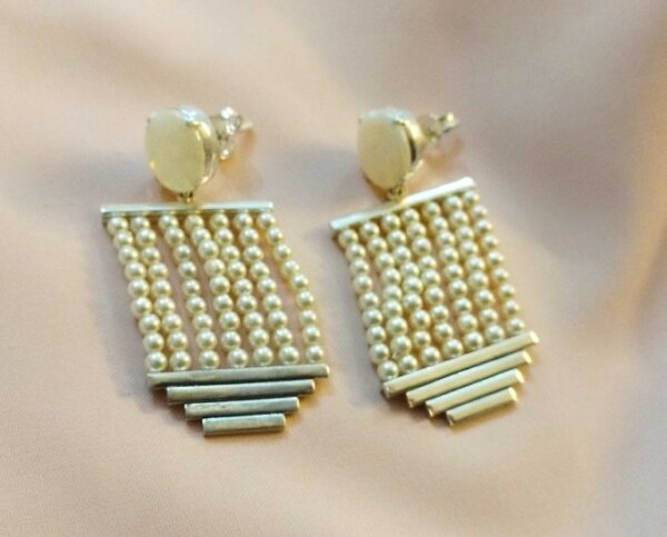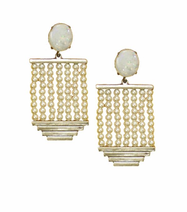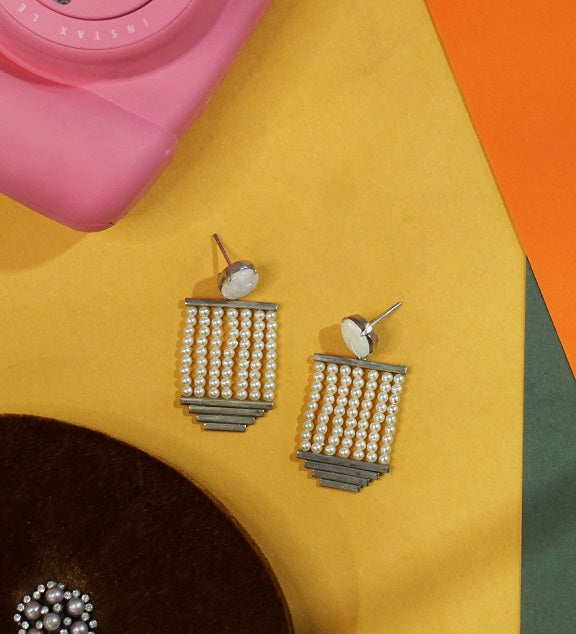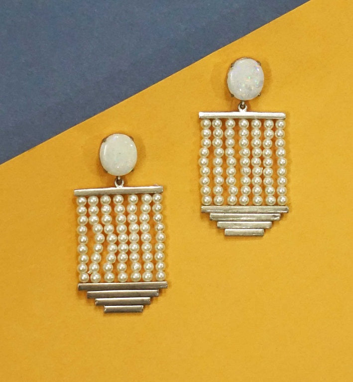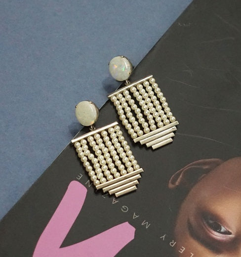Embellished with Fire Opal & Pearls these hanging earrings are a complete delight. Crafted in Sterling Silver they have a high class appeal.