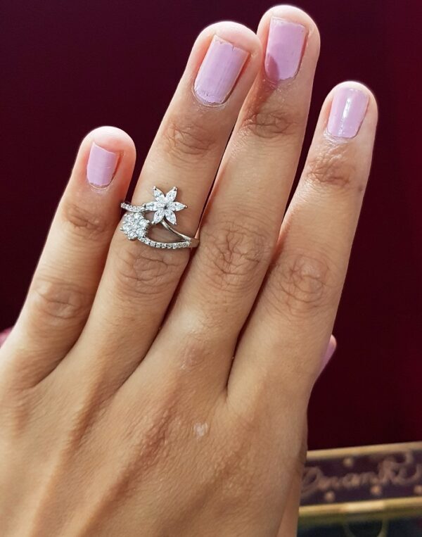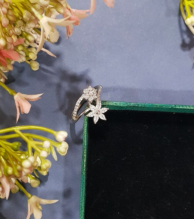Embellished with imitation stones this Flora Fauna Ring is a complete delight. Crafted in Silver it has a high class appeal.