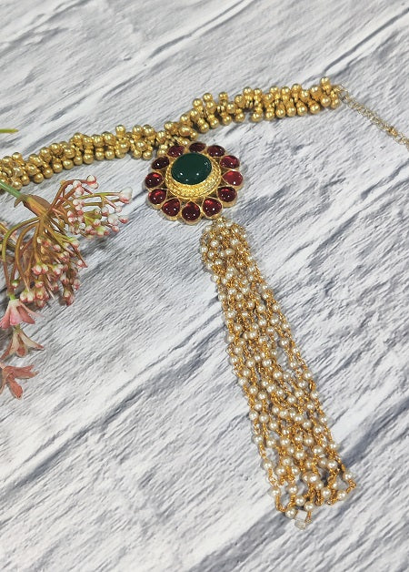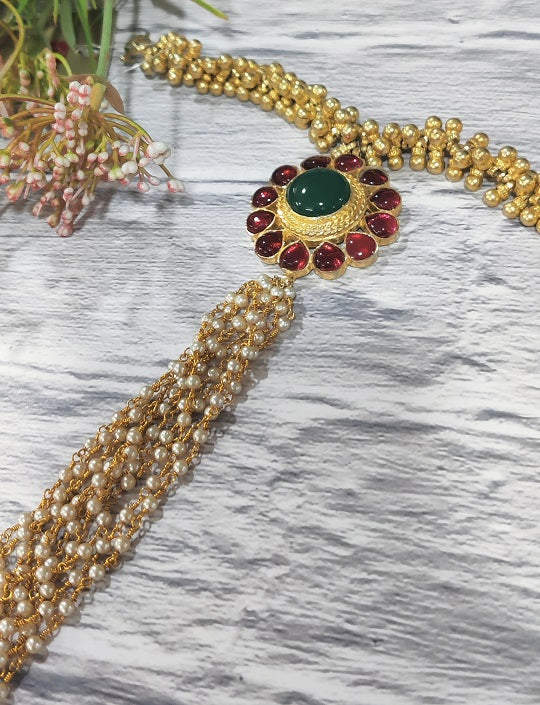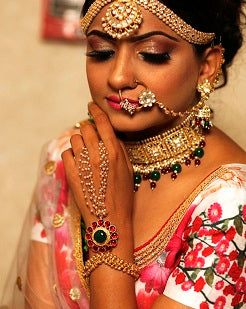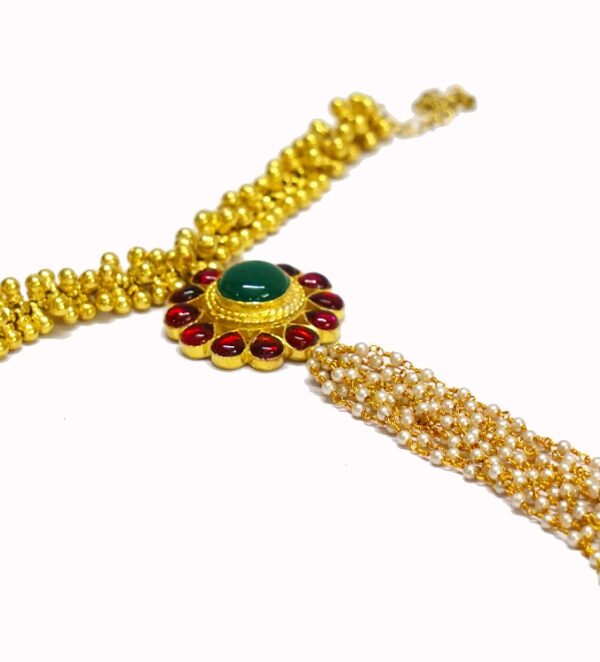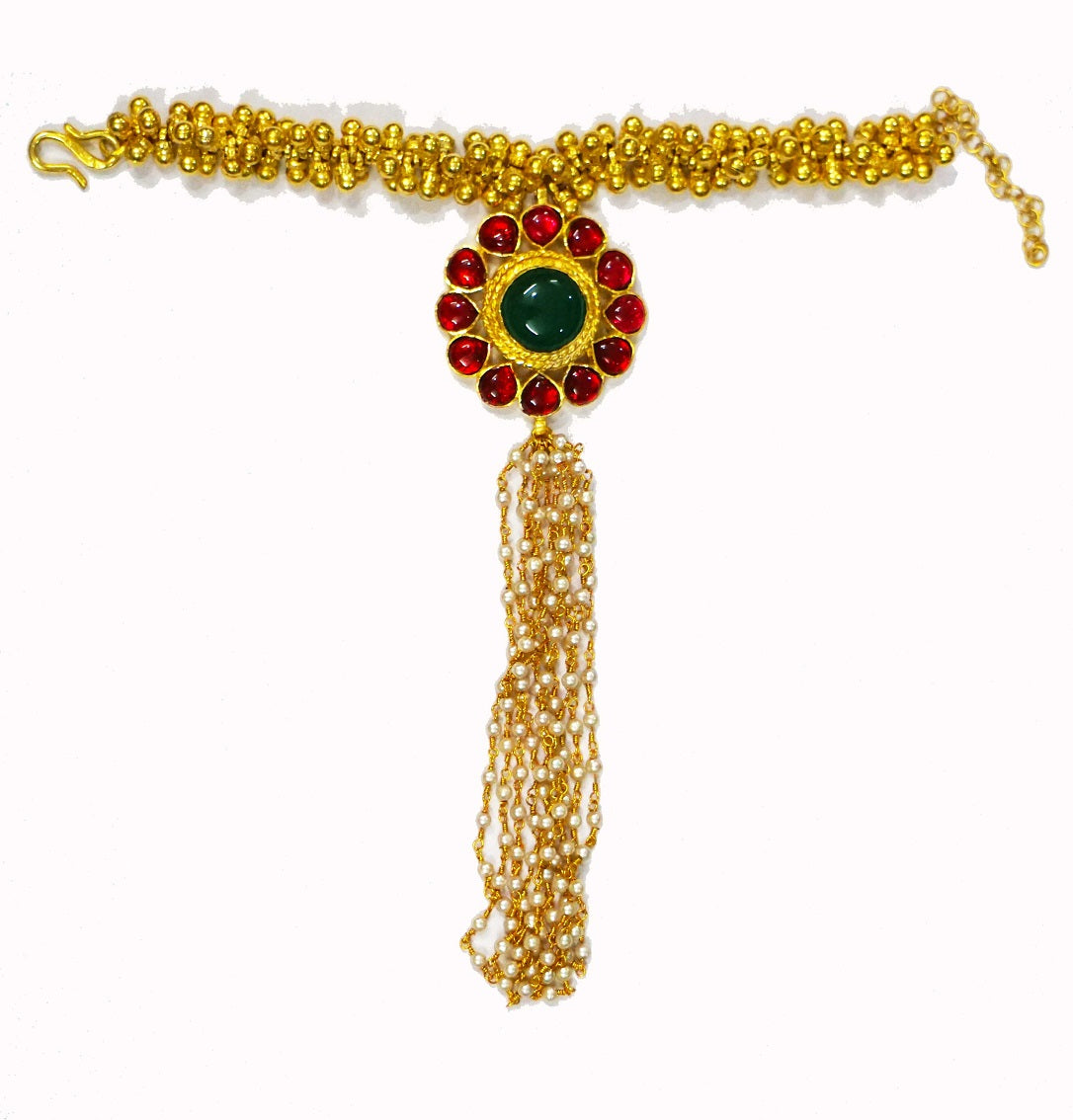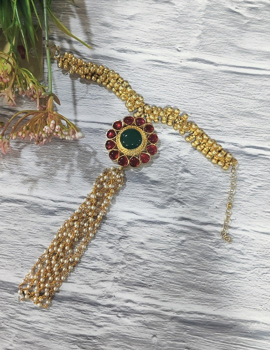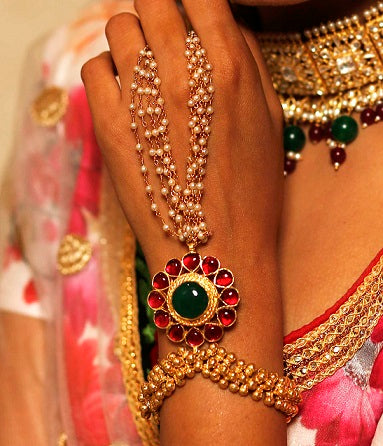 Encrusted with White polki and color imitation color stones the floral motif stands out. It’s a beautiful Bridal catch.