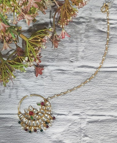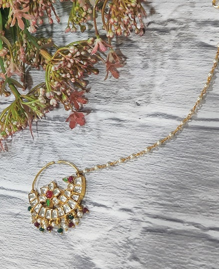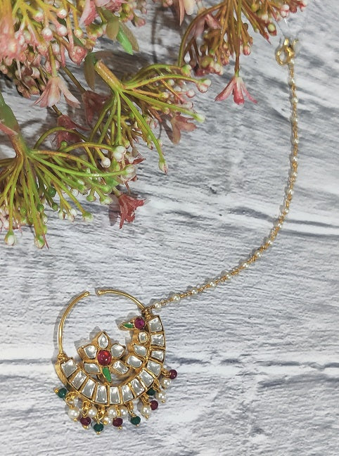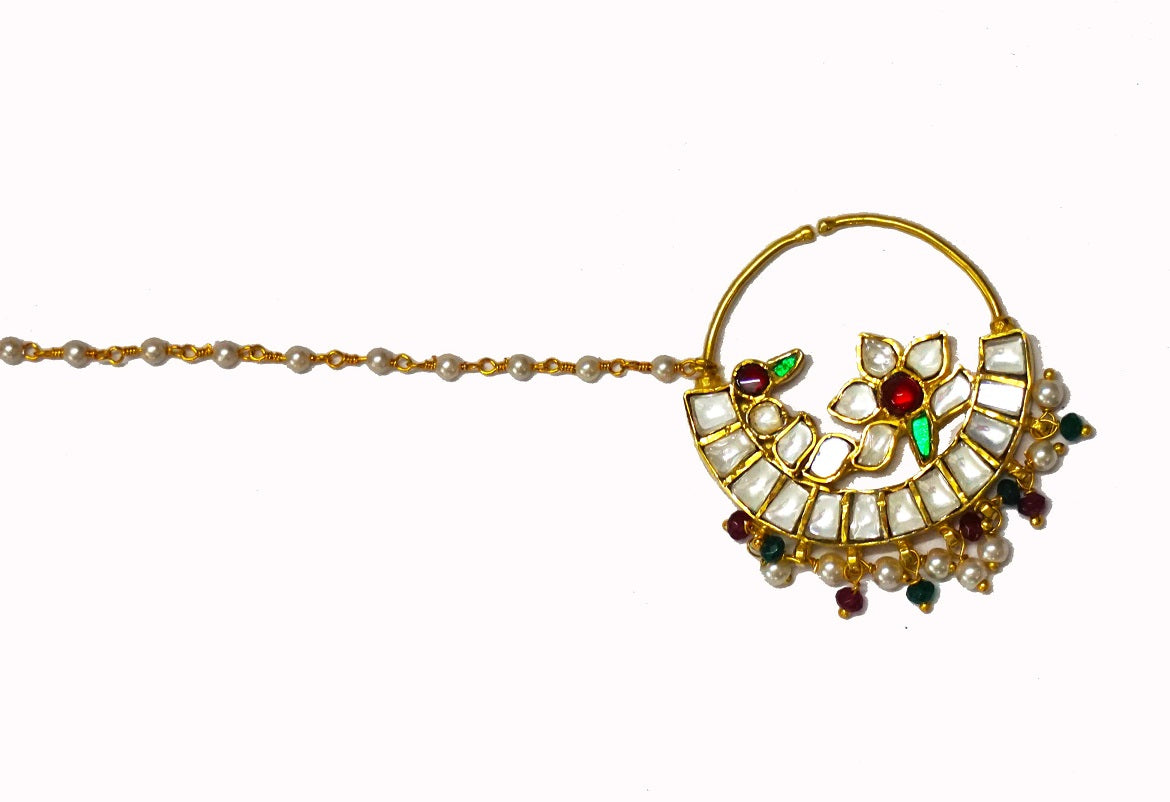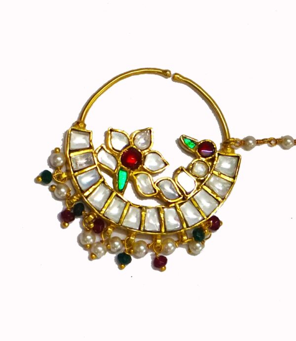 Encrusted with White polki and color imitation color stones the floral motif stands out. It’s a beautiful Bridal catch.