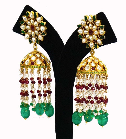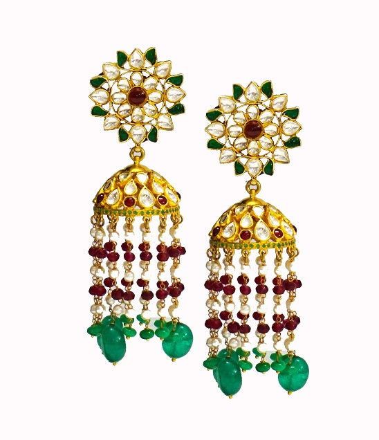 The exquisite art of Kundan Meena goes back to the Mughal & Royalty. This Jhumka creates a classic impression of being one of a kind with authentic Kundan Polki work.