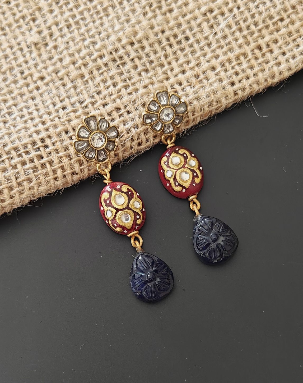 Encrusted with 24k Gold polish and handcrafted in 925 Sterling Silver the appeal of this piece blend of hand paint work and kundan setting.