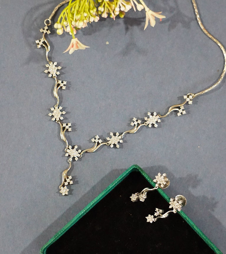 Crafted in silver, light weight necklace set for daily wear stand out.