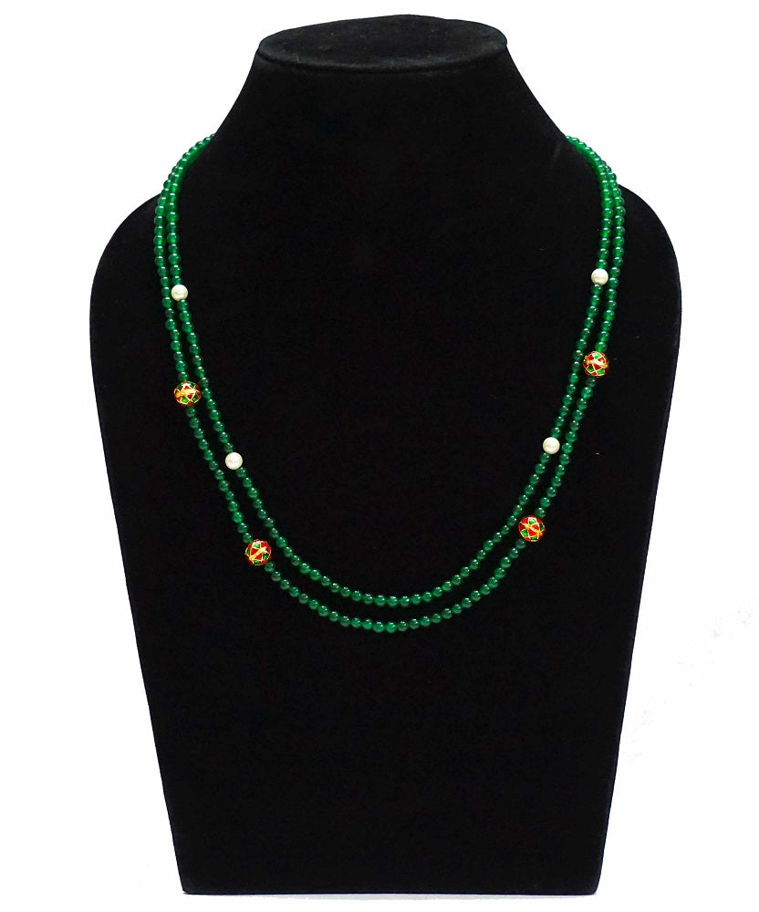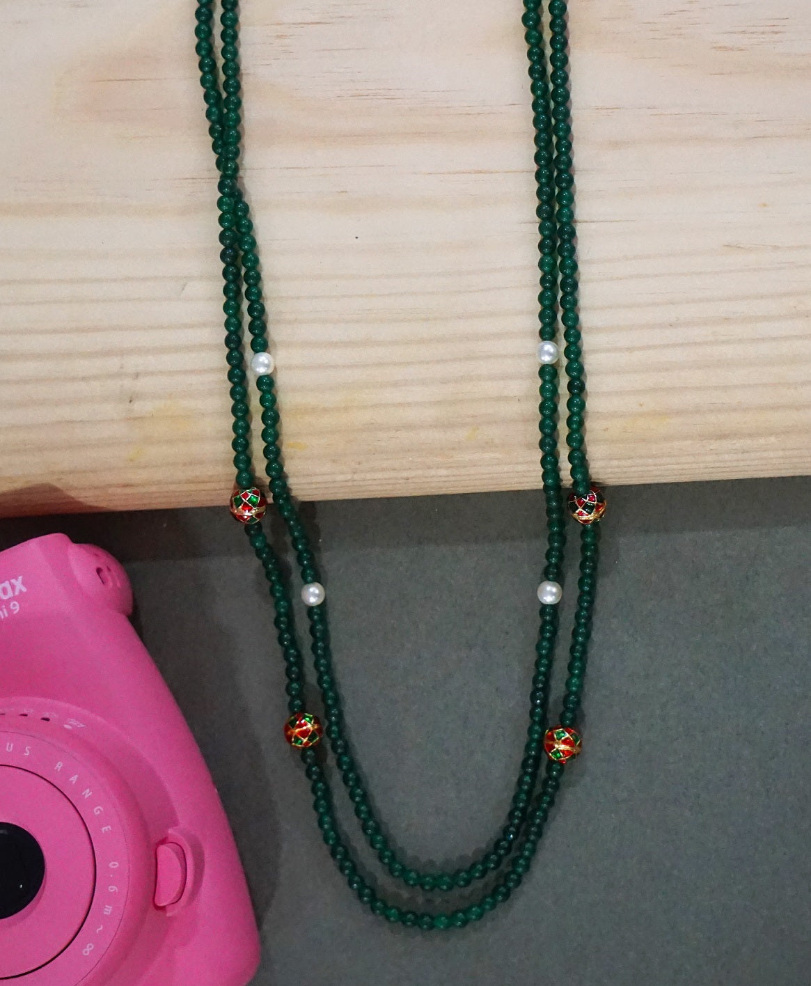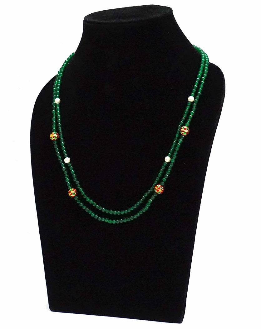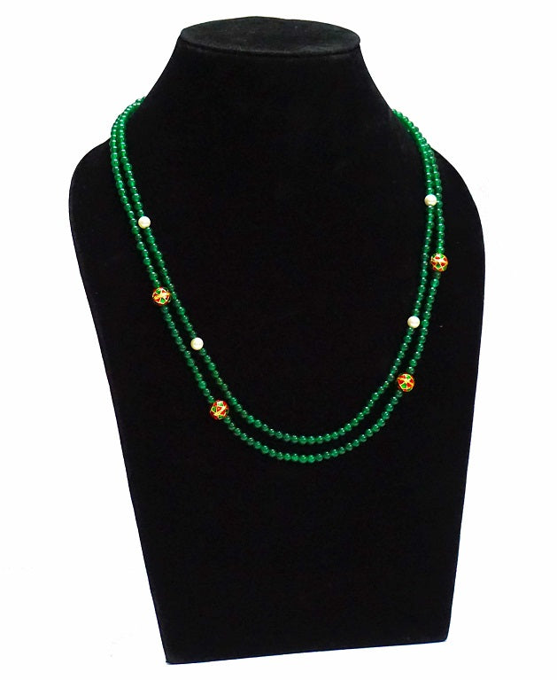 Classic Green Onyx Beads set with meena and color beads for a simple necklace.