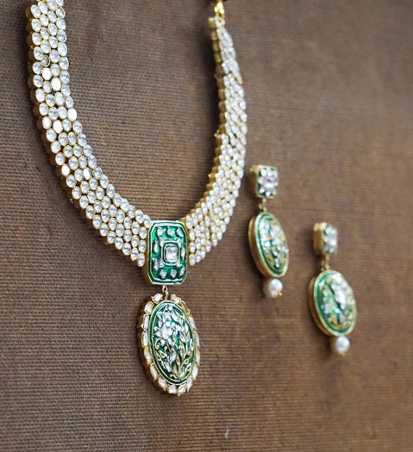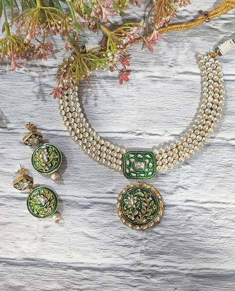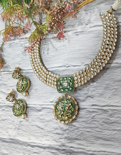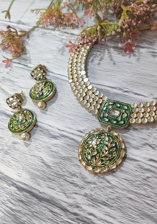Green Meenakari Bridal Necklace Set