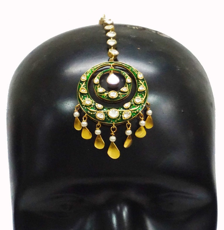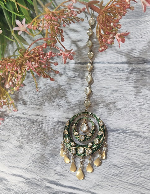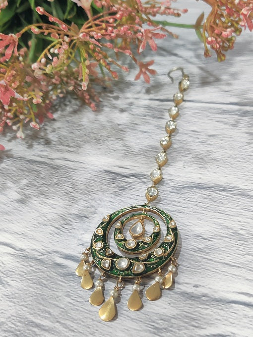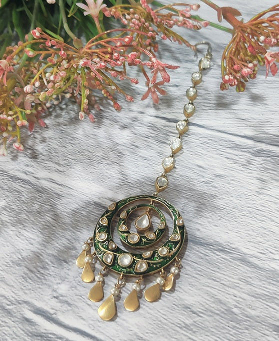 Green Meenakari Maang Tikka