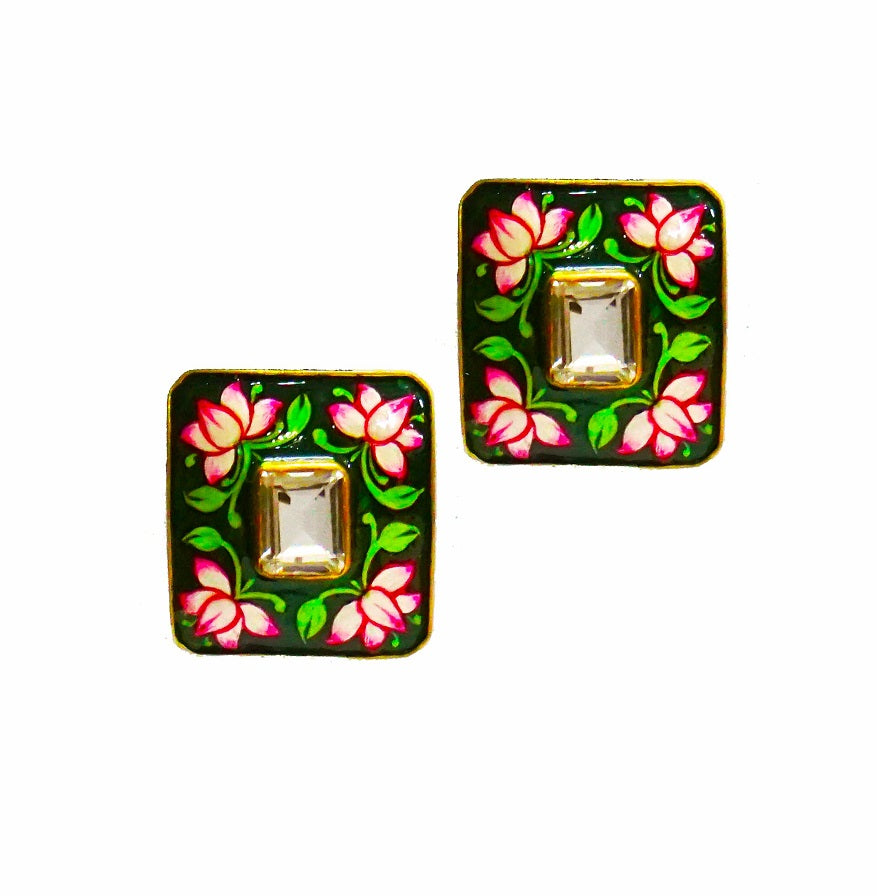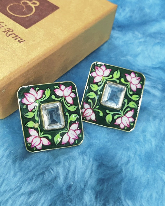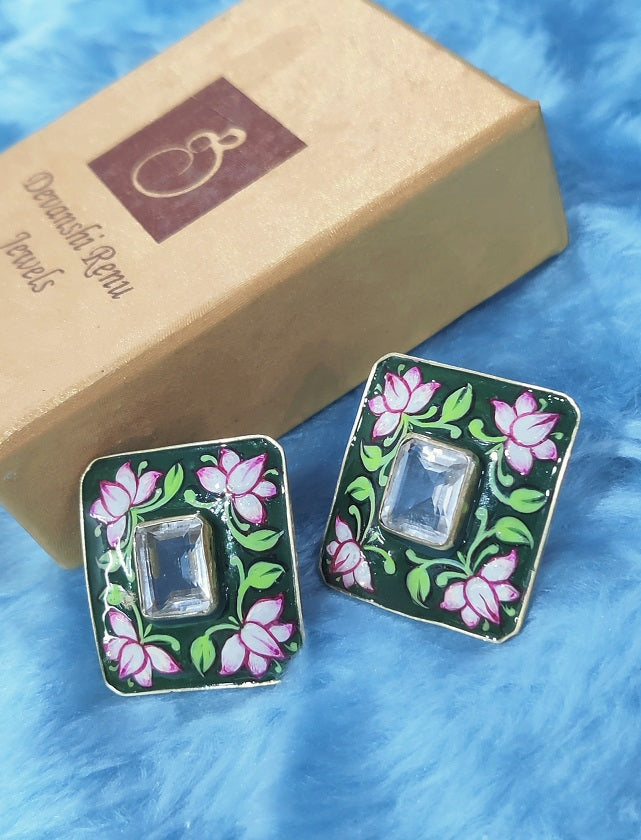Green Meenakari Stud