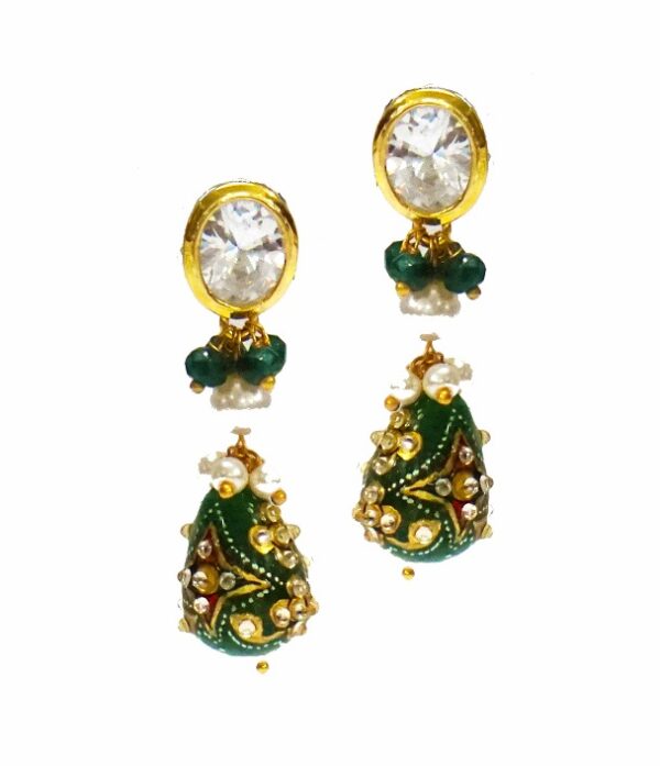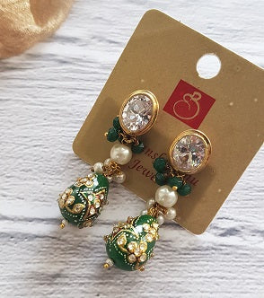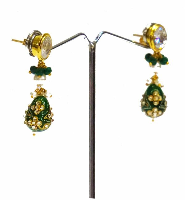 Encrusted with hand painted work Green Onyx is set in Silver. The exquisite blend of colors makes it a must-have.