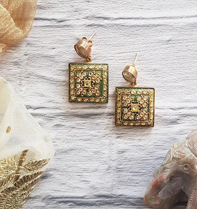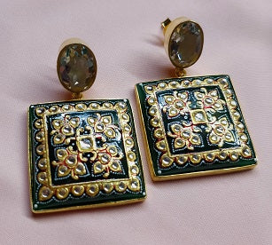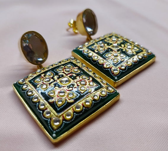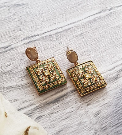 Dangling earrings with the imitation stone is a blend of traditional and modern thought.