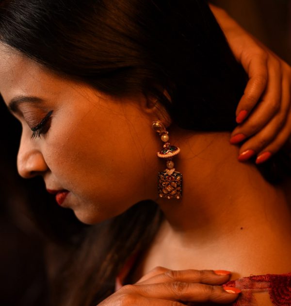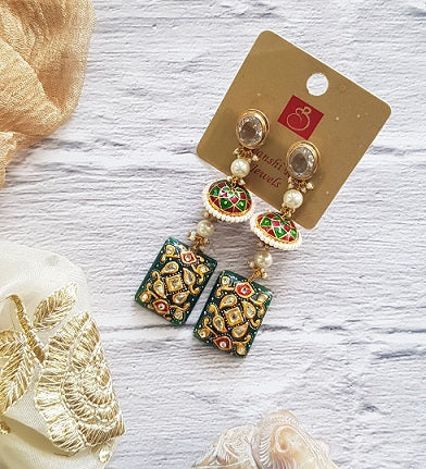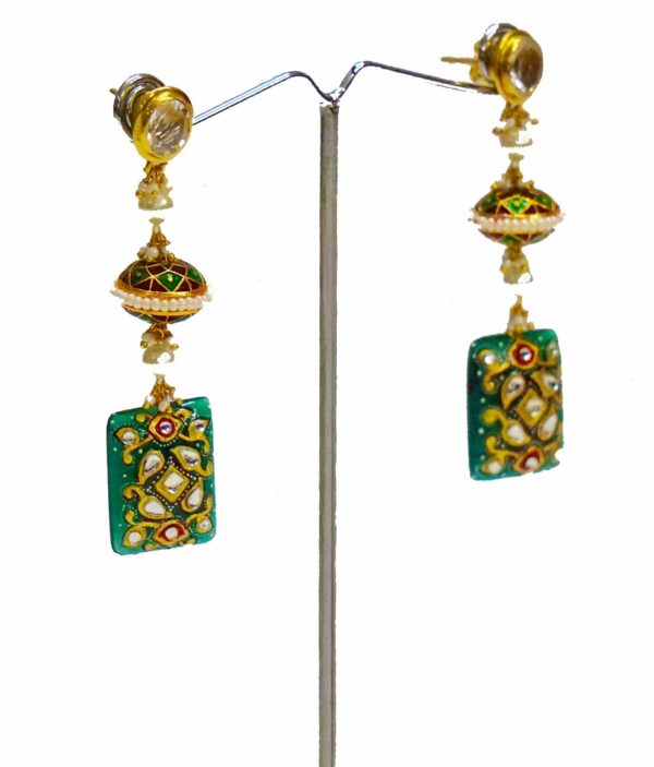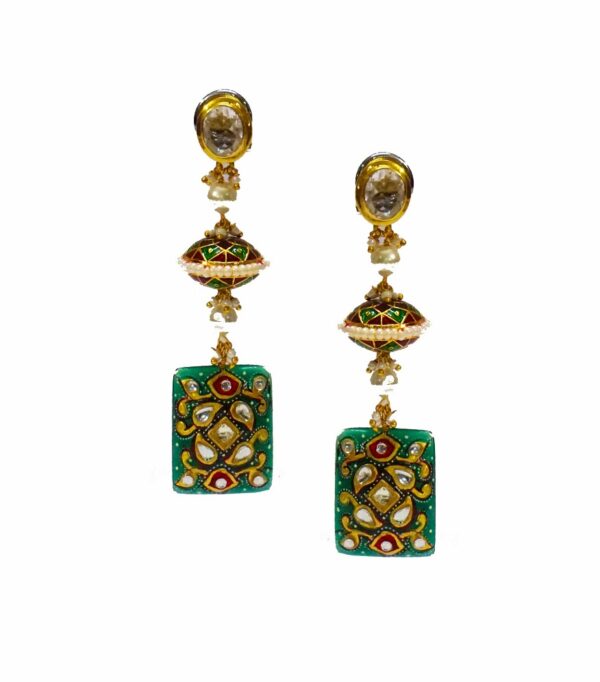 Encrusted with hand painted work Green Onyx is set in Silver. The exquisite blend of colors makes it a must-have.