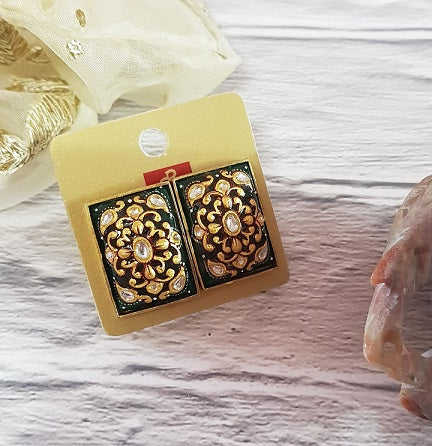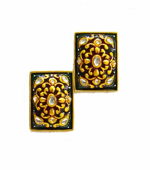 Encrusted with hand painted work Green Onyx is set in Silver. The exquisite blend of colors makes it a must-have.