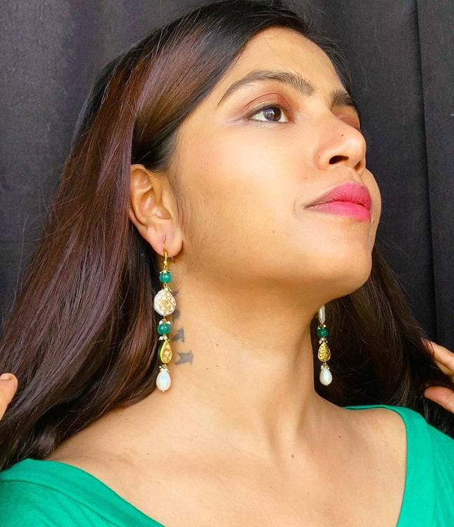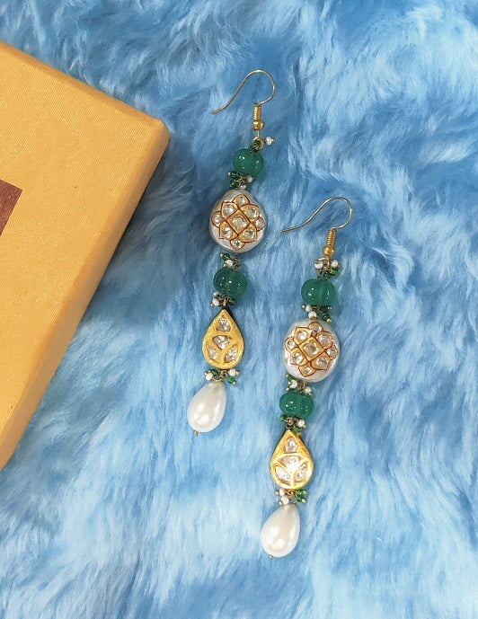 Pear shape drop combination with Pearls has just right fusion and class. Beautifully embellished and styled for the latest trend.