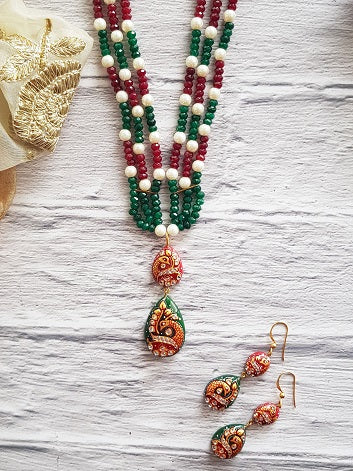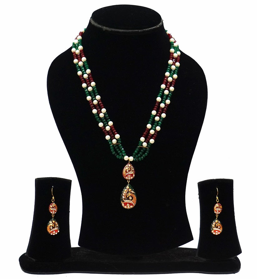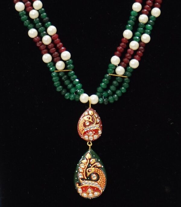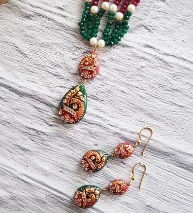 Encrusted with hand painted work Green & Red Onyx is set in Silver. The exquisite blend of colors makes it a must-have.