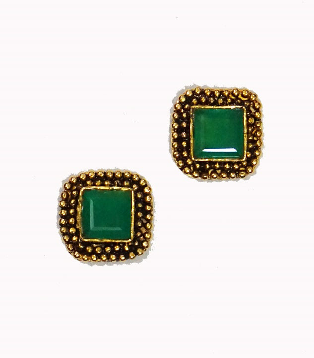 Green stone set in brass and surrounded with rava work this stud is casual and everyday wear.