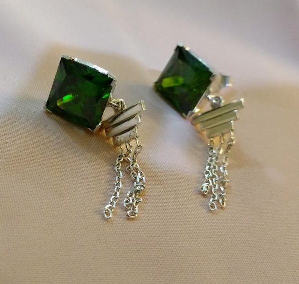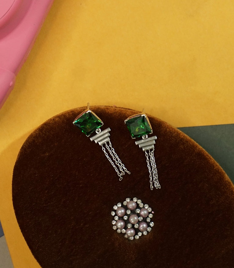 Handcrafted in Sterling Silver the catchy greens stud is got up with chain giving it a young chic look.