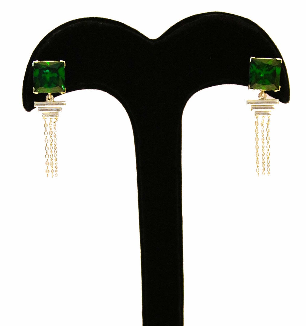 Green Stud Chain Earrings