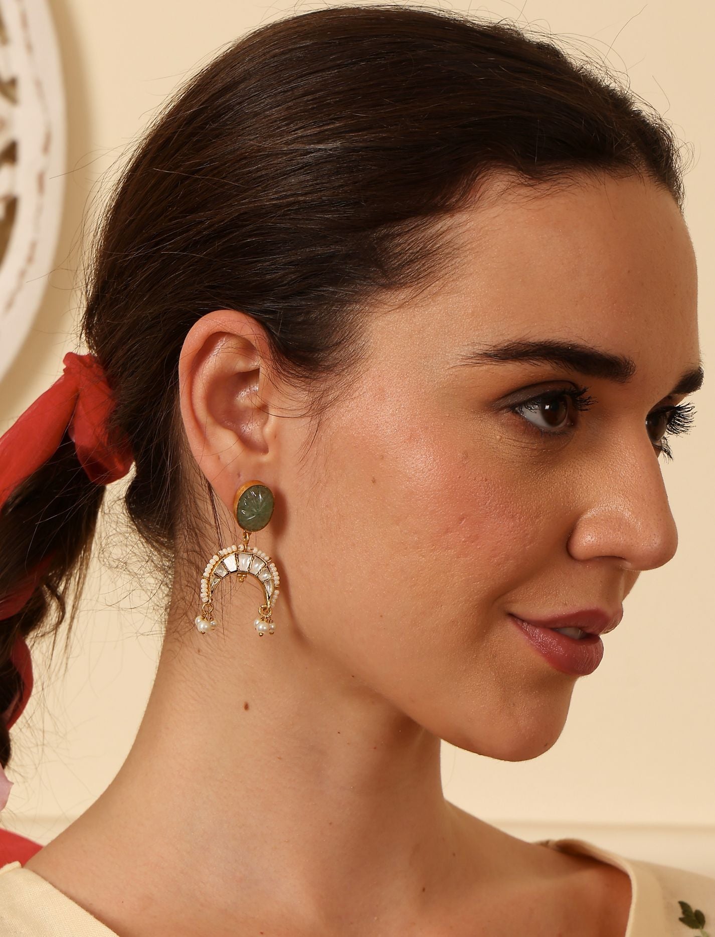 Encrusted with 24k Gold polish and handcrafted in 925 Sterling Silver the appeal of this piece is the classic kundan setting.