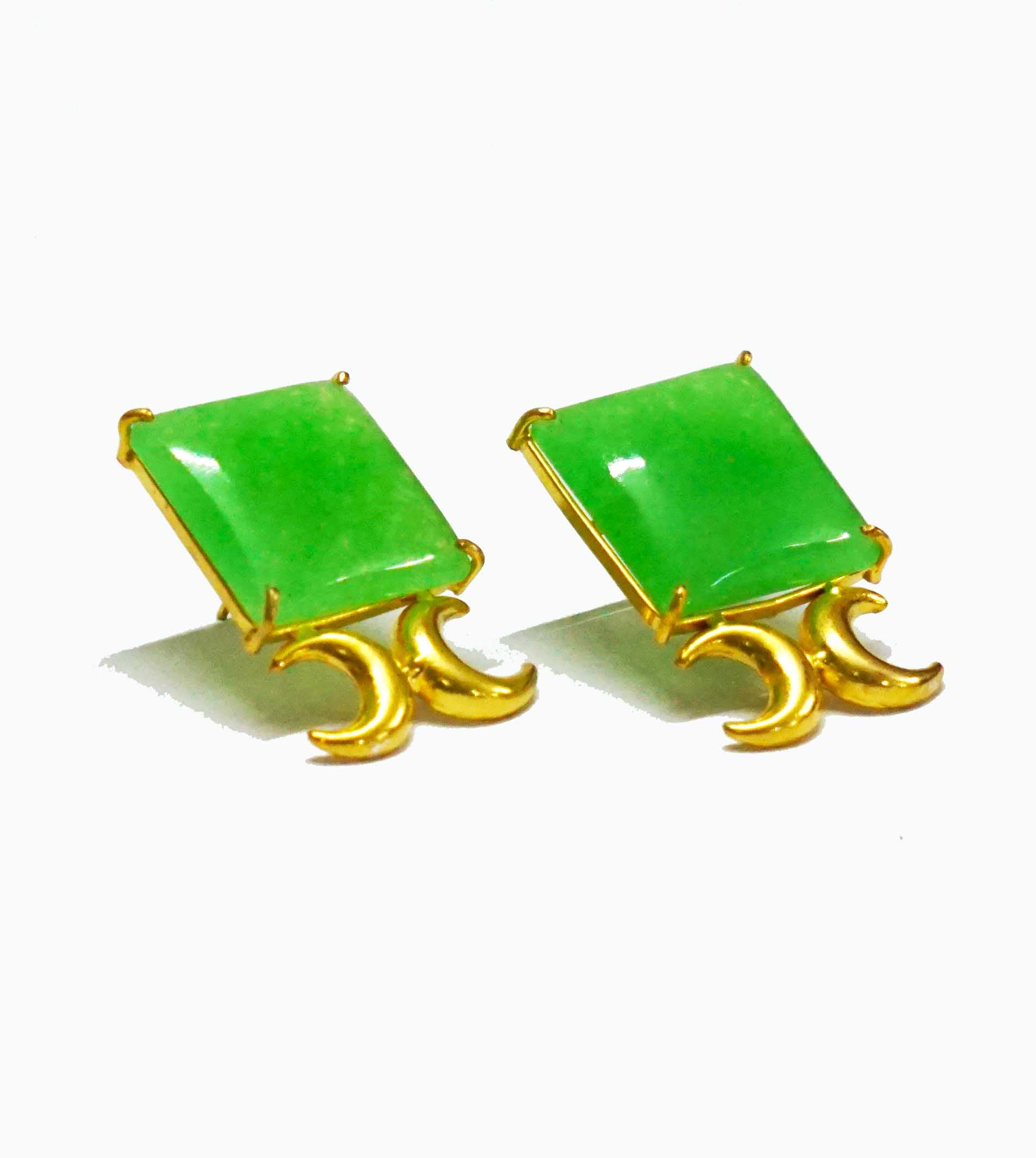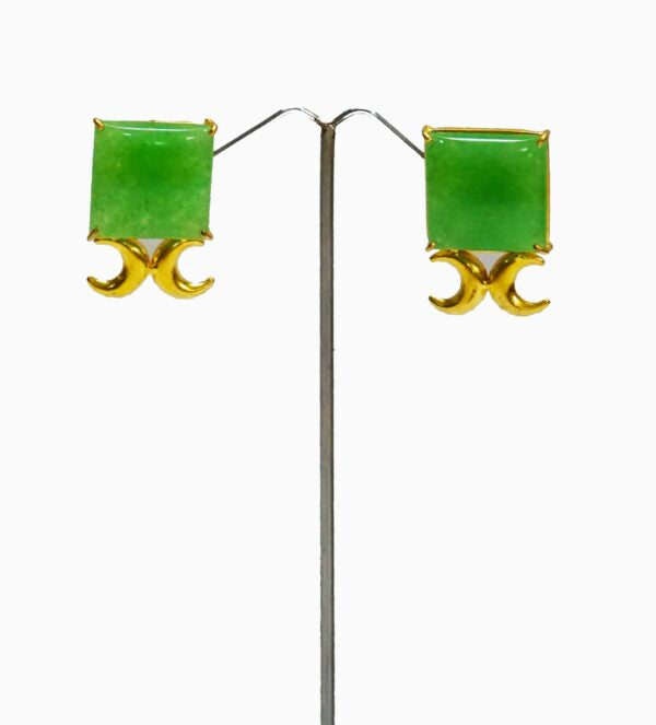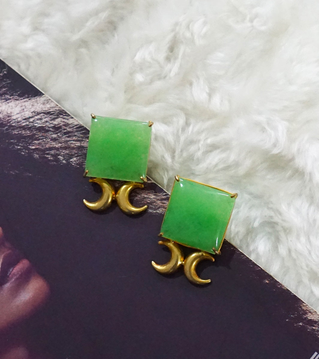 Jade Stone with a crescent motif in a Square stud.