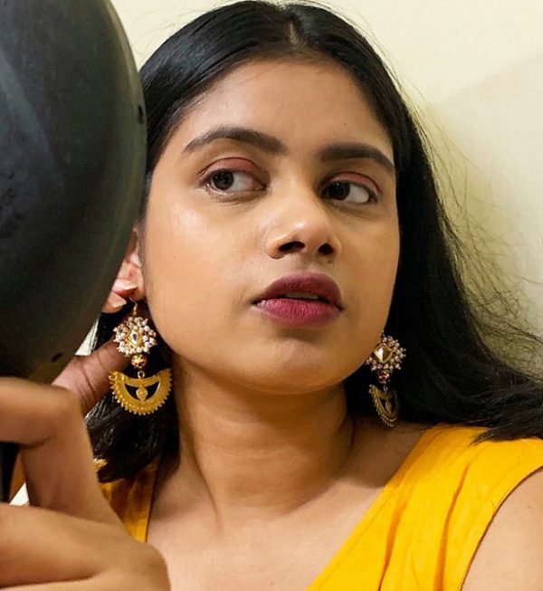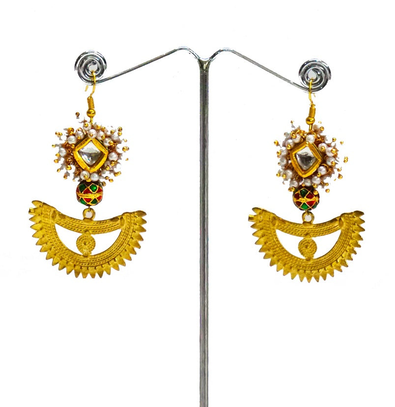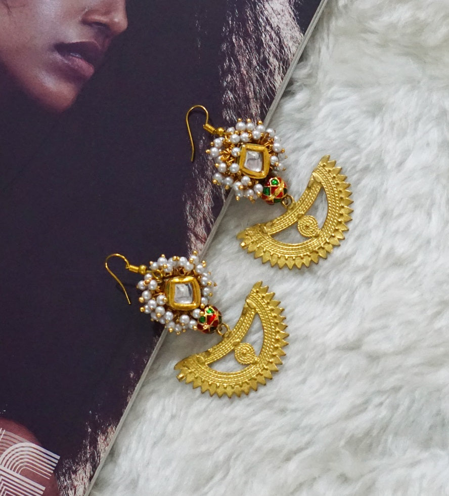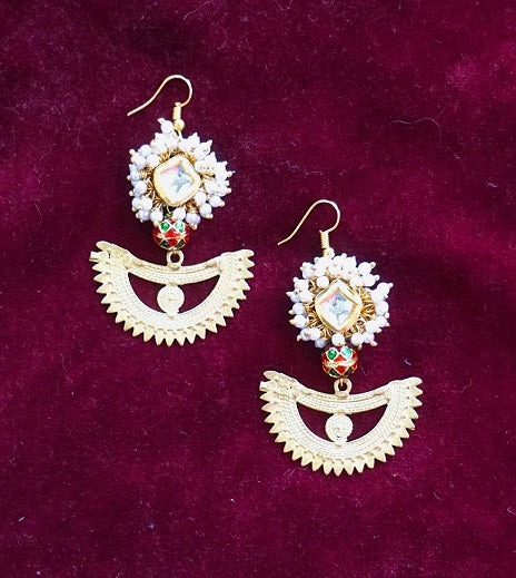Kundan stone set with pearls and dangling Meena bead is beautiful ethnic wear.